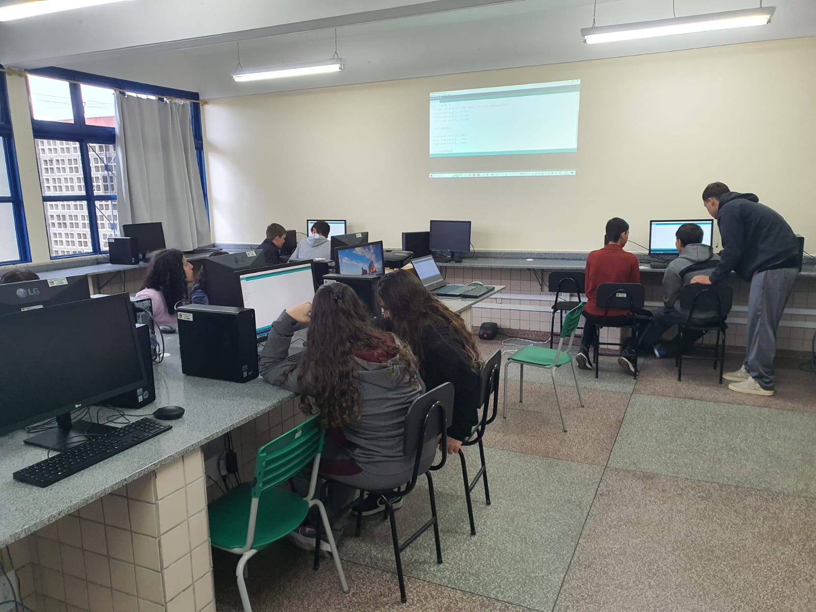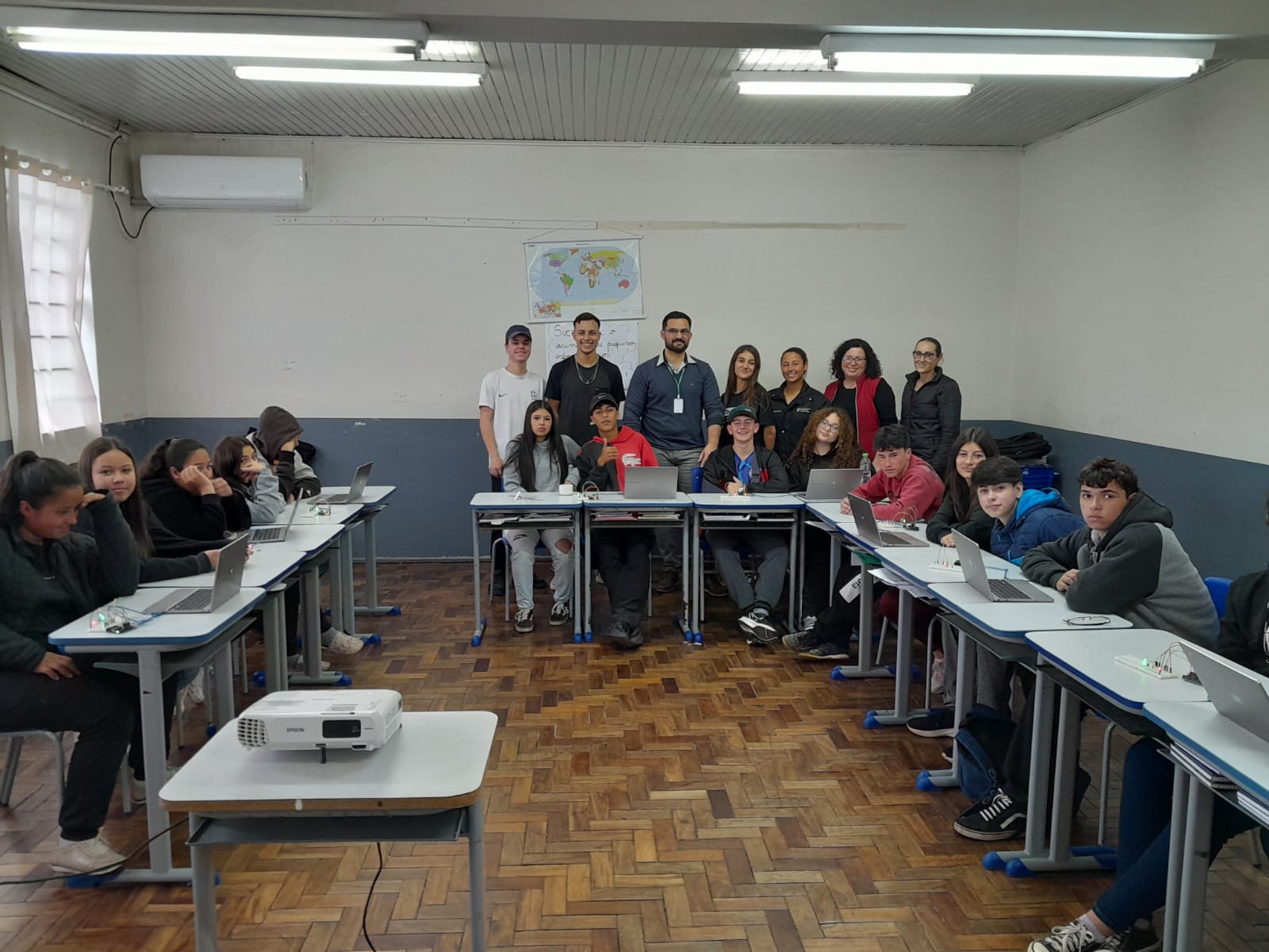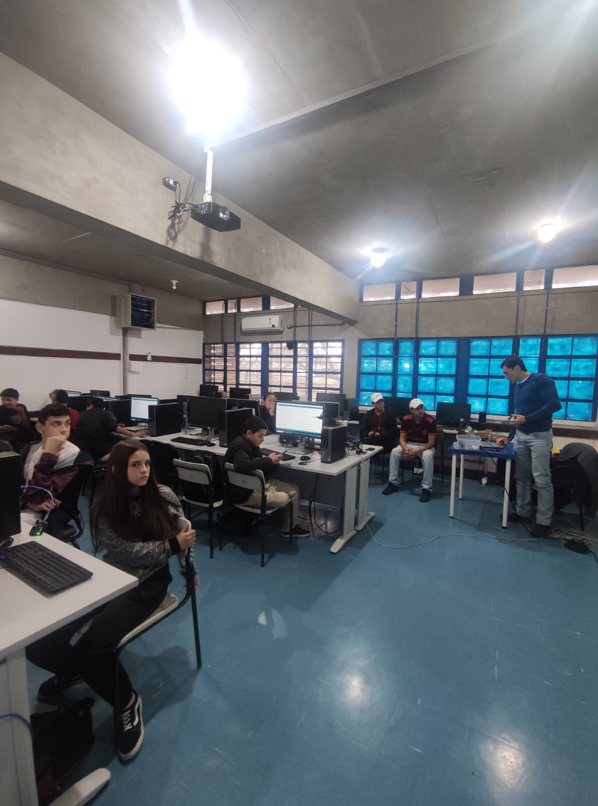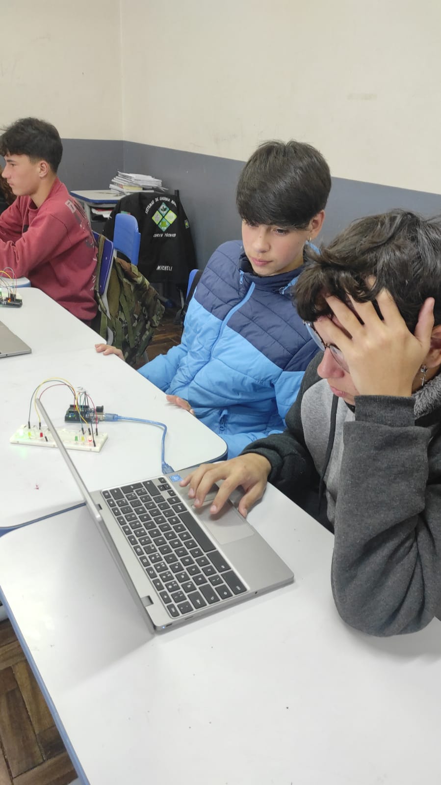 Os estudantes do IFFar receberam uma formação intensiva sobre programação em Arduino e desempenharam um papel fundamental como monitores durante a oferta das disciplinas. Eles foram responsáveis por ajudar os alunos da oficina a realizarem as atividades práticas propostas em sala de aula.