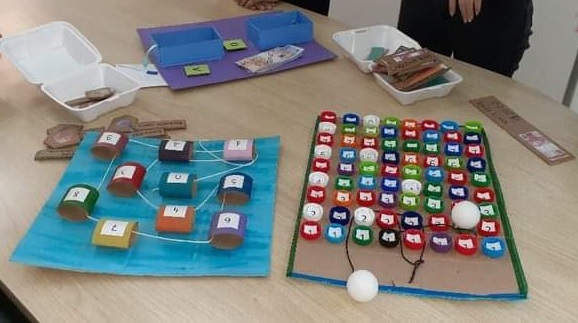 Foto: materiais didáticos para ensino de matemática elaborado por extensionistas do IFFar