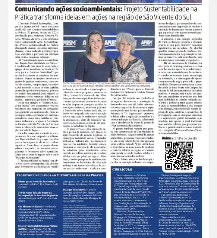 O Sustentabilidade na Prática é um projeto que engloba diversas atividades de ensino, pesquisa e extensão executadas no Campus São Vicente do Sul, entre elas: