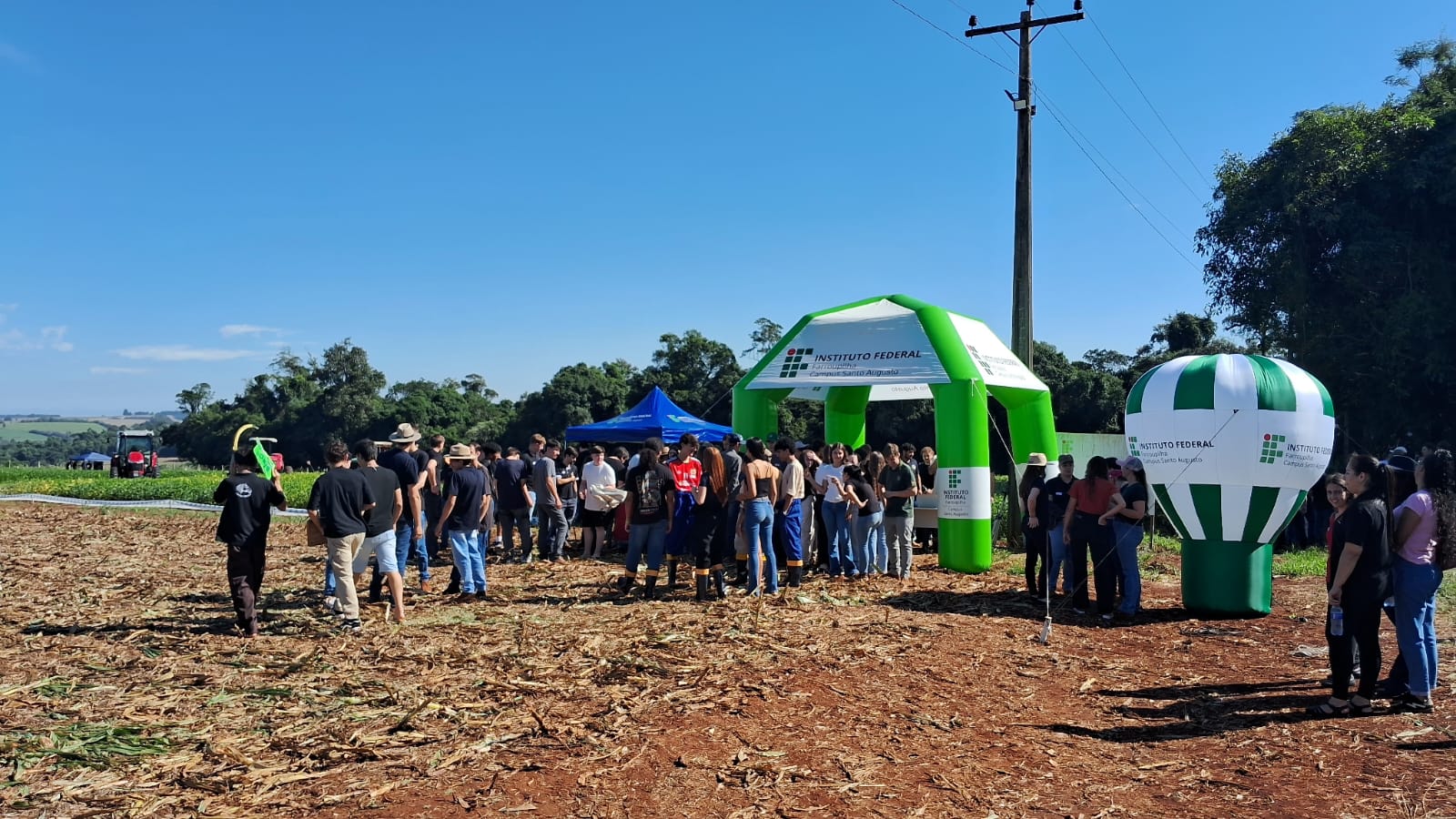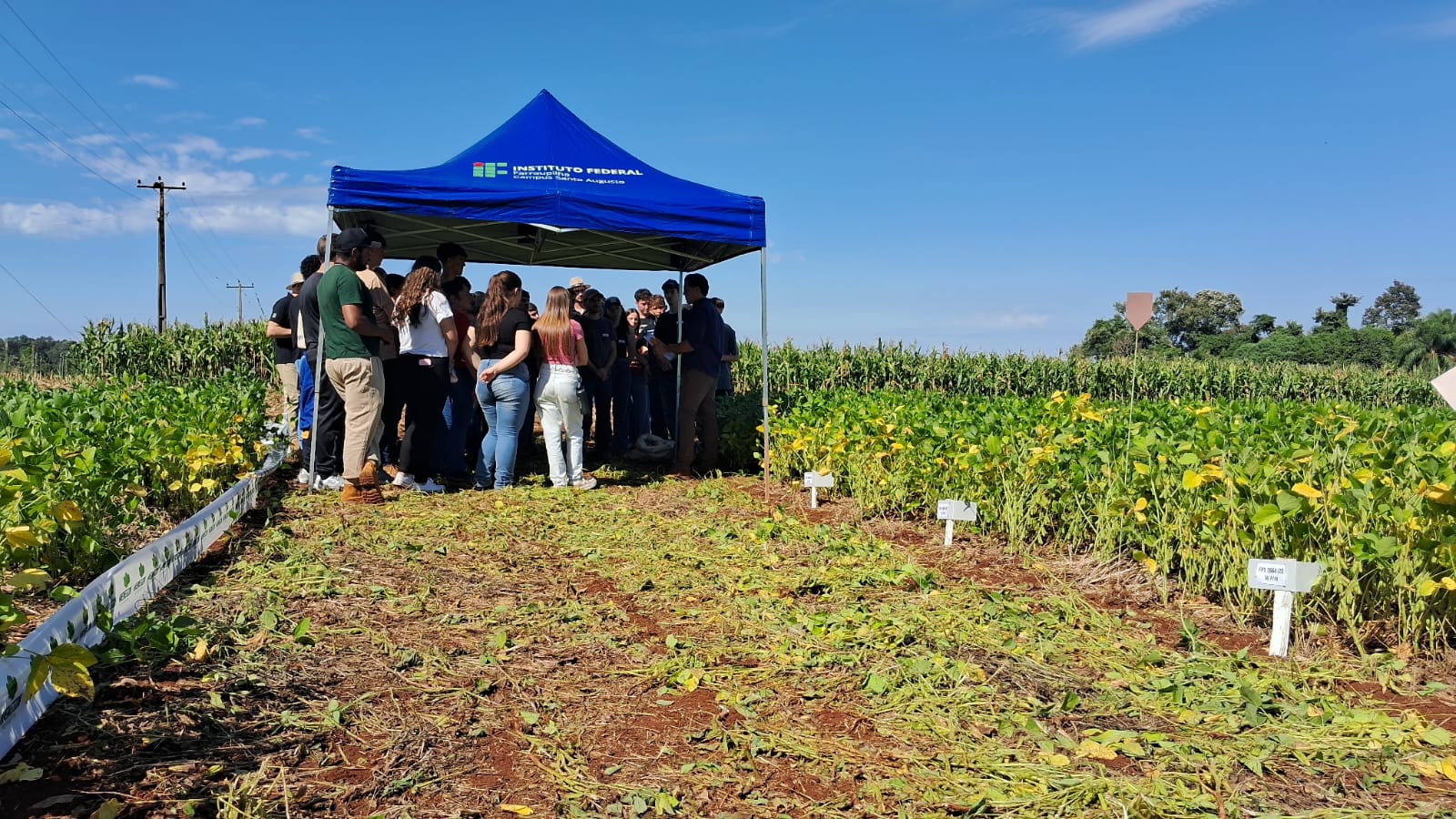 Os acadêmicos do curso de Bacharelado em Agronomia do IFFar – Campus Santo Augusto, integrantes do Grupo Pós-Col: Ensino, Pesquisa e Extensão em Pós-Colheita e Qualidade de Grãos e Sementes, realizaram na quinta-feira, dia 26 de março, a 8ª Edição do Tour Agrícola, na área didático experimental, ao lado do Ginásio de Esportes da instituição.