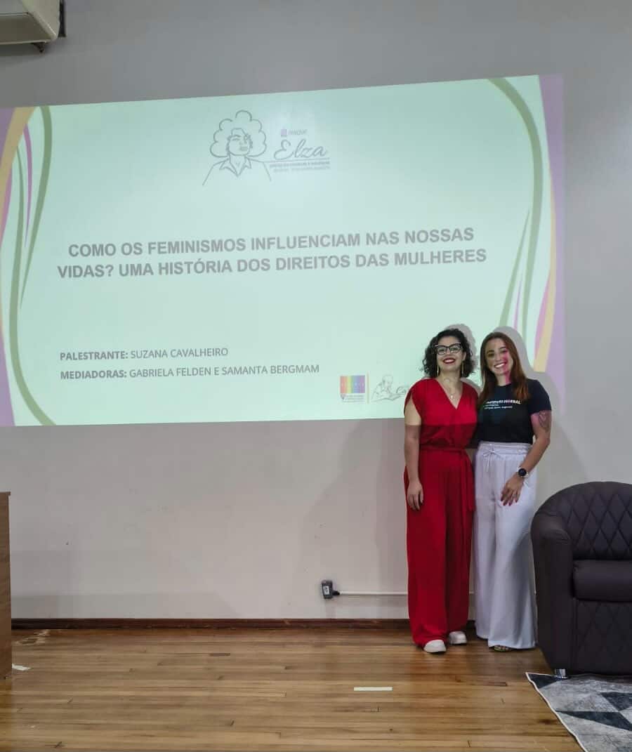 A palestra ministrada pela professora da Unipampa, Drª Suzana Cavalheiro de Jesus, teve como tema “Como os feminismos influenciam nas nossas vidas? Uma história dos direitos das mulheres”, abordando as conquistas das mulheres e os desafios enfrentados na busca por equidade social, garantia de direitos e segurança, com as mediações da presidente do Nugedis, Gabriela Felden (TAE do IFFar – Campus Santo Augusto) e da vice-presidente Samanta Bergmam (docente substituta do IFFar – Campus Santo Augusto).