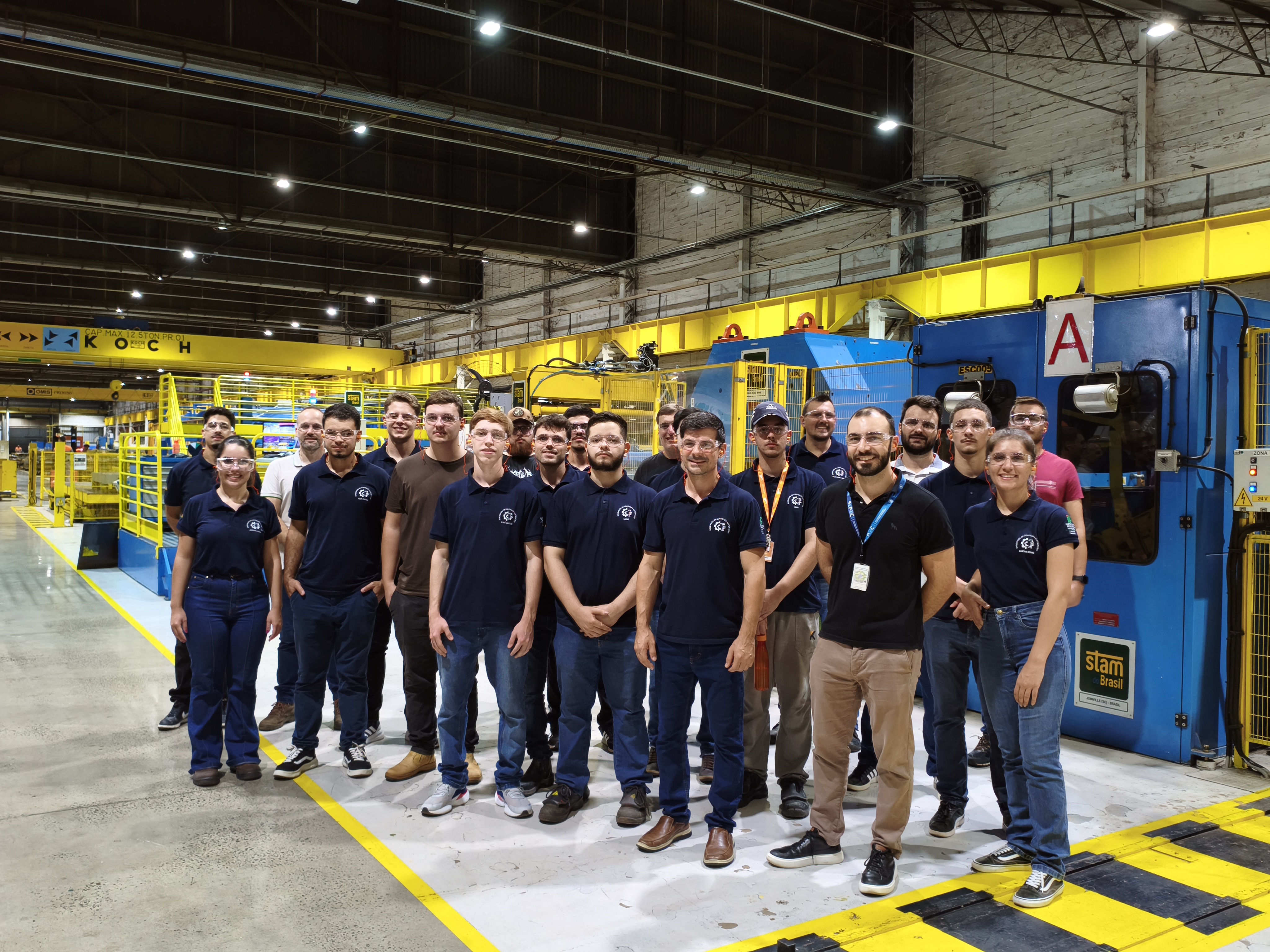 Durante o momento, os alunos tiveram o privilégio de conhecer toda a estrutura da empresa, acompanhando na prática a dinâmica e o funcionamento de grandes setores fundamentais para a operação da indústria. A visita contemplou passagens detalhadas pelas áreas de Pesquisa e Desenvolvimento, Manutenção, Engenharia Métodos e Processos.
