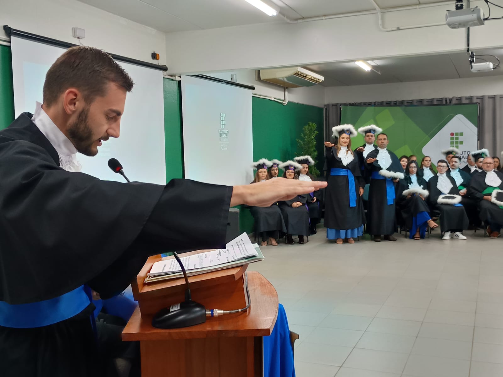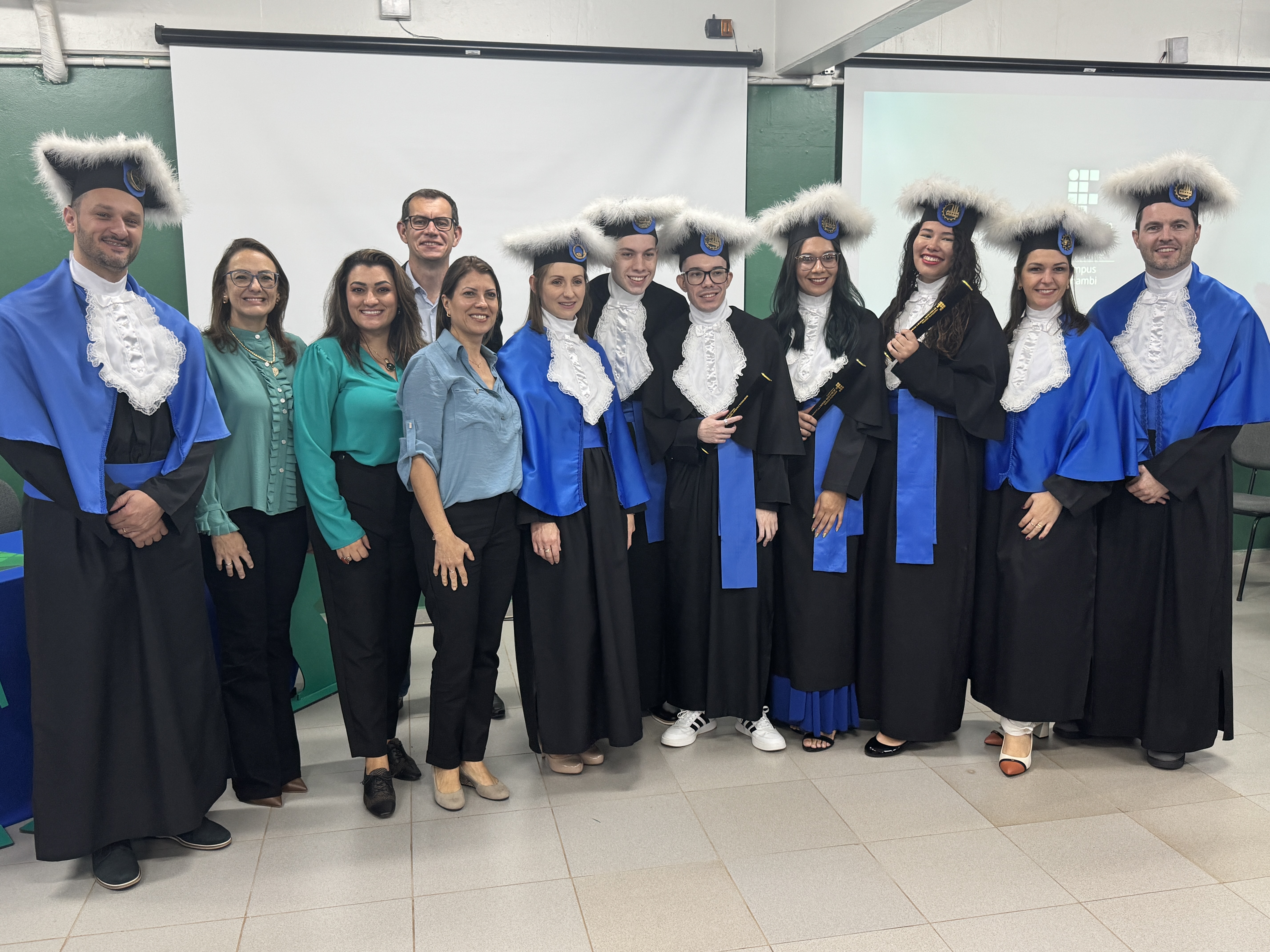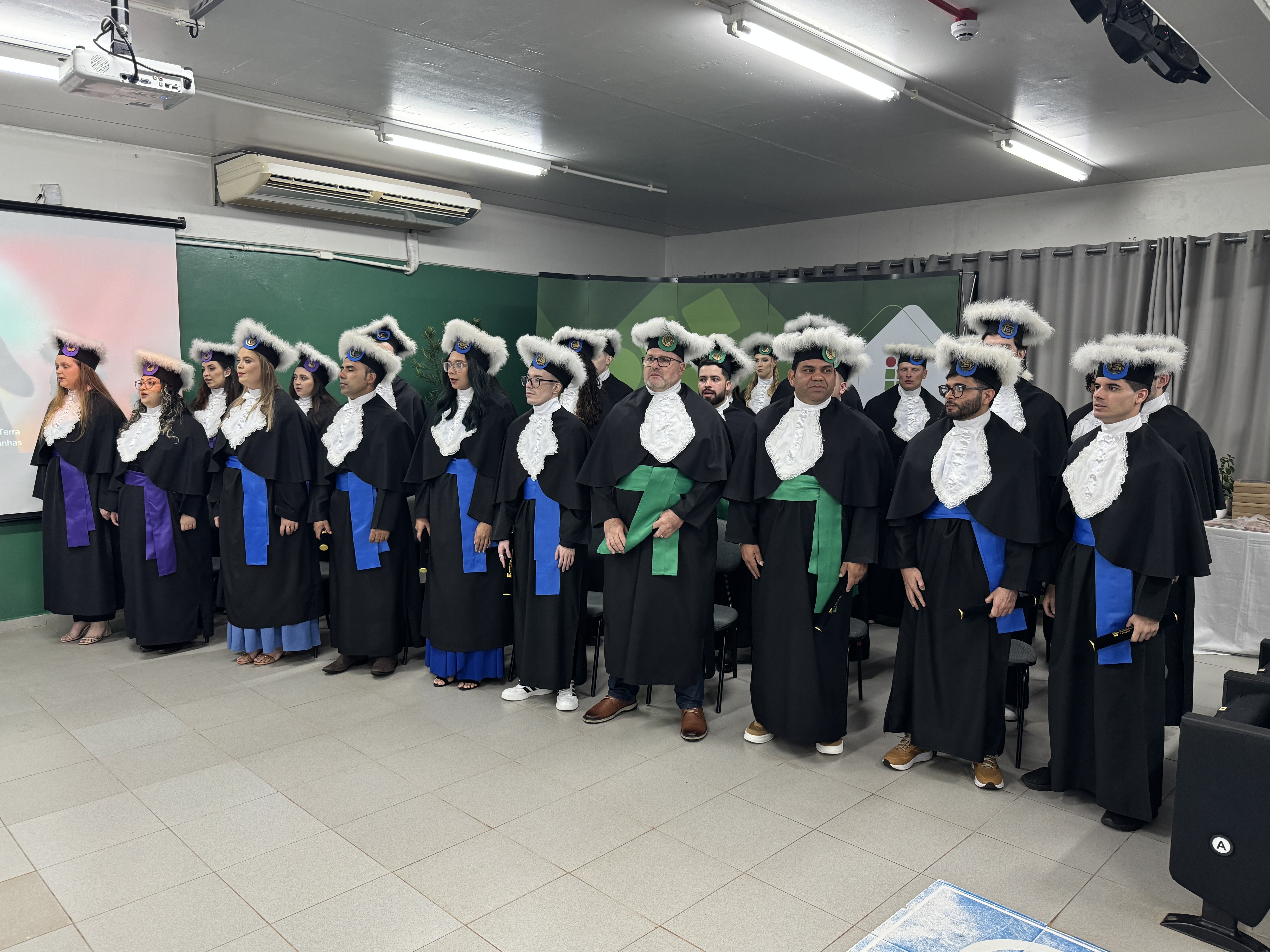 A cerimônia reuniu autoridades acadêmicas, familiares e convidados, marcando a conquista dos formandos. A sessão foi presidida pelo Diretor-Geral do campus, professor Marcelo Bataglin, responsável pela outorga de grau aos concluintes.
