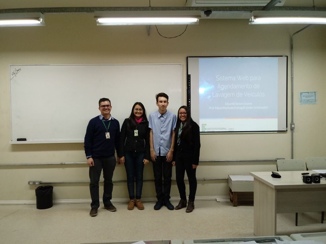 Os professores Renan Gabbi (Coordenador do Curso Superior de Sistemas para Internet) e Éverton Lutz (Presidente do NIT) acompanharam os estudantes durante o evento.