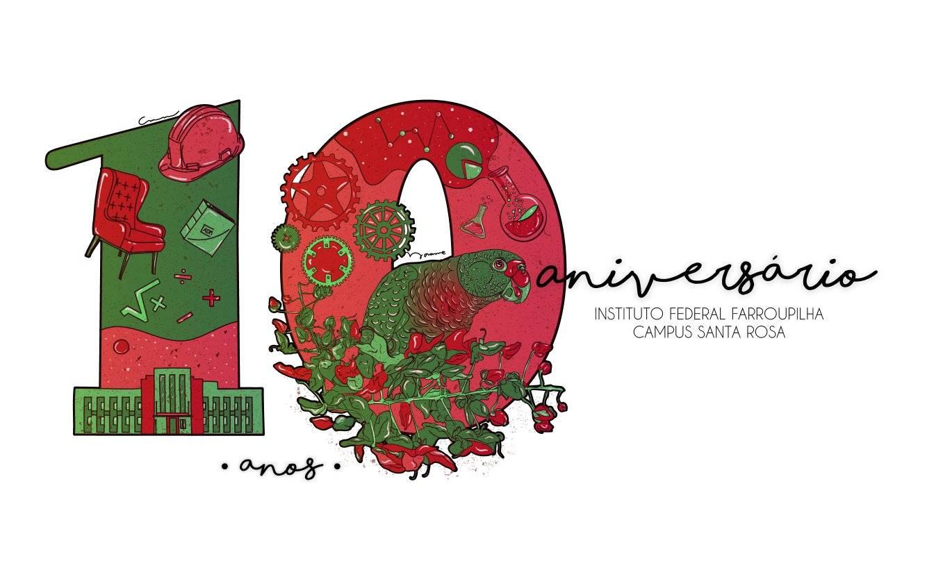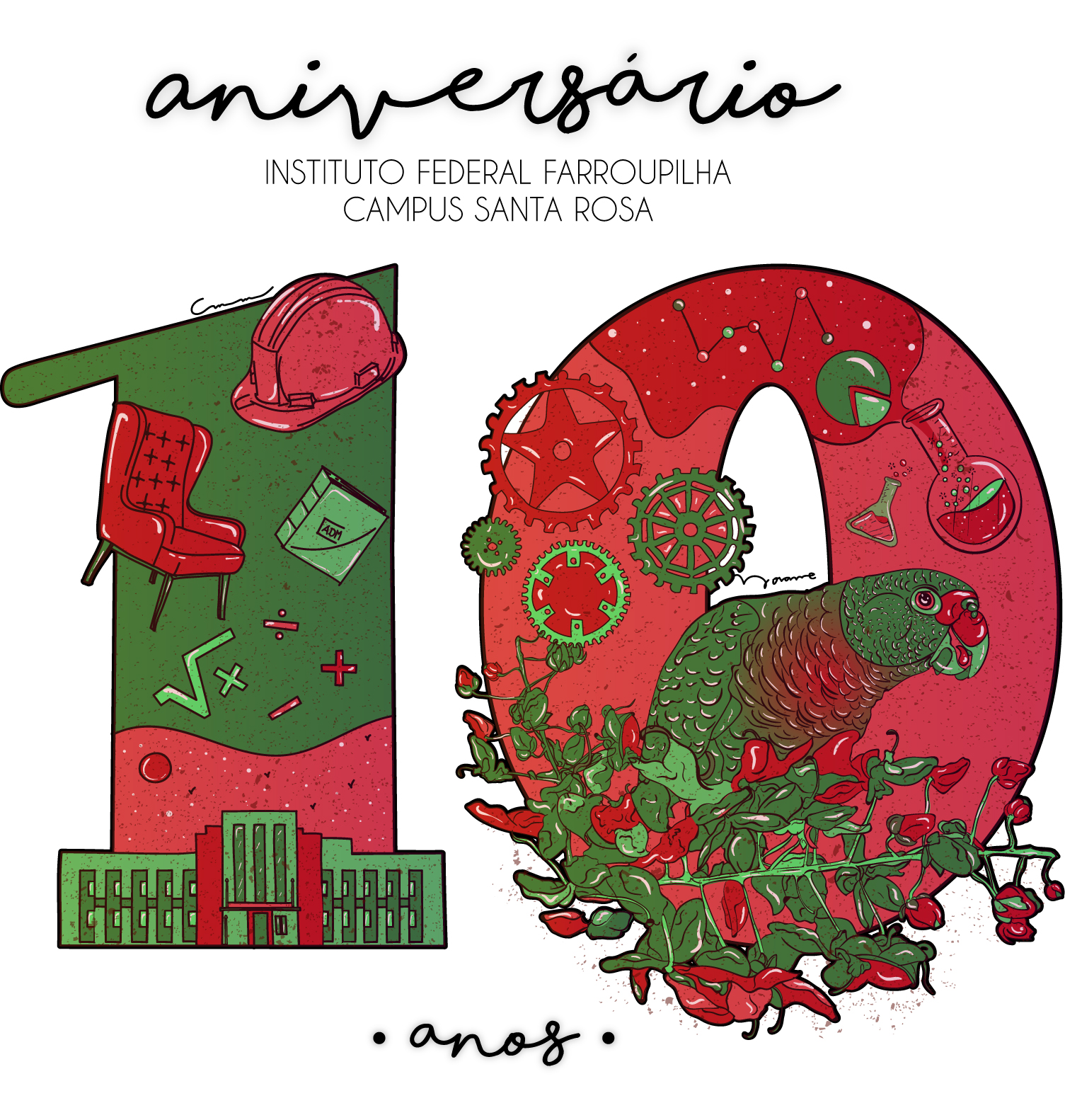 Uma série de atividades estava sendo planejada por uma comissão organizadora para marcar esta data significativa. No entanto, em função das atividades acadêmicas terem que acontecer de forma remota devido à pandemia provocada pelo novo coronavírus, todos os eventos presenciais tiveram seu cancelamento. Neste contexto, e para marcar o começo da celebração do aniversário, foi criada uma marca comemorativa, que será vista ao longo de 2020 nas redes sociais e publicações institucionais. A marca foi elaborada pelas alunas Cristina Martin e Safira Norame, ambas acadêmicas do curso de Arquitetura e Urbanismo do IFFar – Campus Santa Rosa. As duas integram o Projeto Ilustrar, coordenado pela professora Neidi Kunkel, com a colaboraçãoda professora Fernanda Rigo. A proposta da marca busca retomar aspectos importantes do campus e da nossa cidade, retratando elementos que representem como o conhecimento ofertado pelo IFFar é parte essencial de nossa instituição. “A representação dos cursos foi pensada da maneira mais atrativa e clara para o fácil entendimento da marca pelos professores, alunos e servidores”, destacam as acadêmicas. Todos os cursos atualmente ofertados pelo IFFar – Campus Santa Rosa estão retratados na marca: o bacharelado em Administração, o bacharelado em Arquitetura e Urbanismo, a licenciatura em Ciências Biológicas, a licenciatura em Matemática, o tecnólogo em Alimentos, os técnicos integrados ao Ensino Médio em Edificações e Móveis, o técnico em Alimentos modalidade Proeja, o técnico em Eletromecânica e o técnico em Administração EaD.