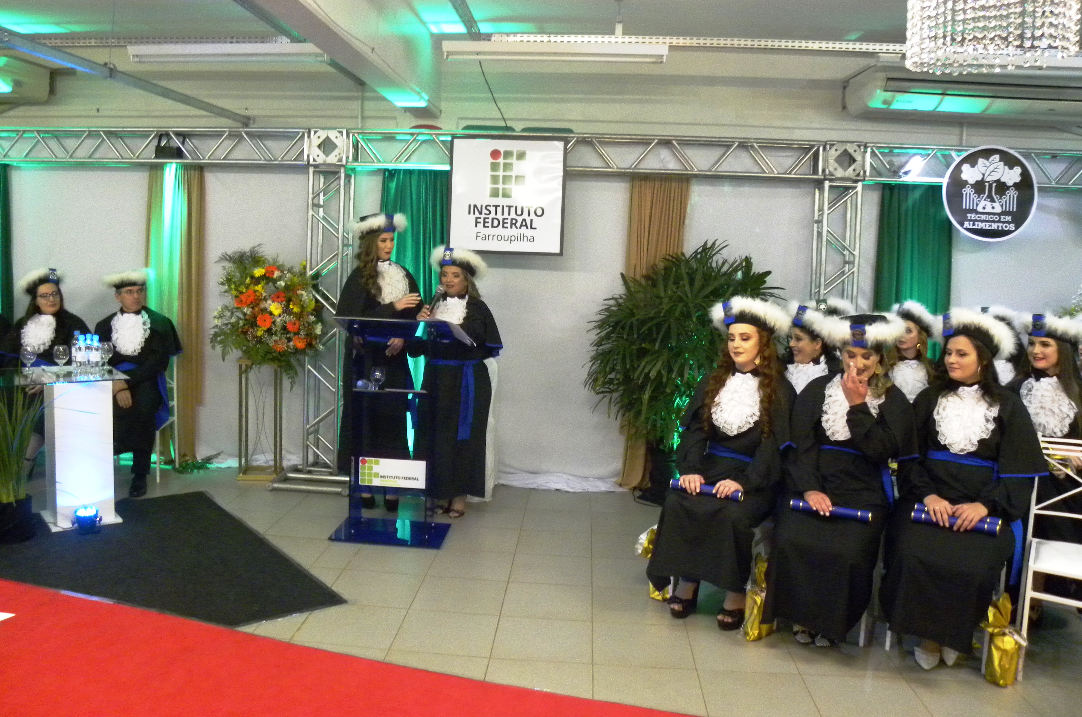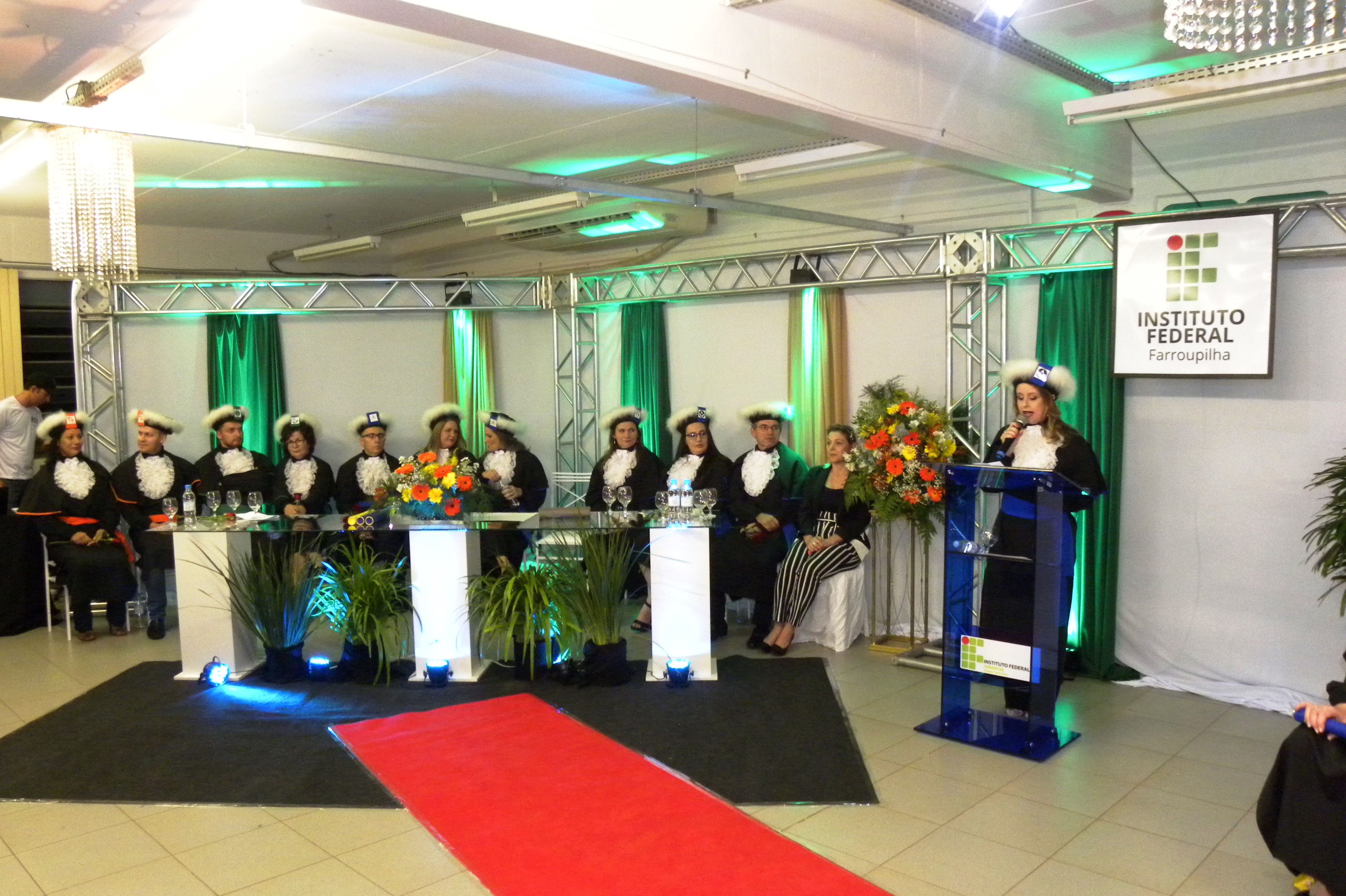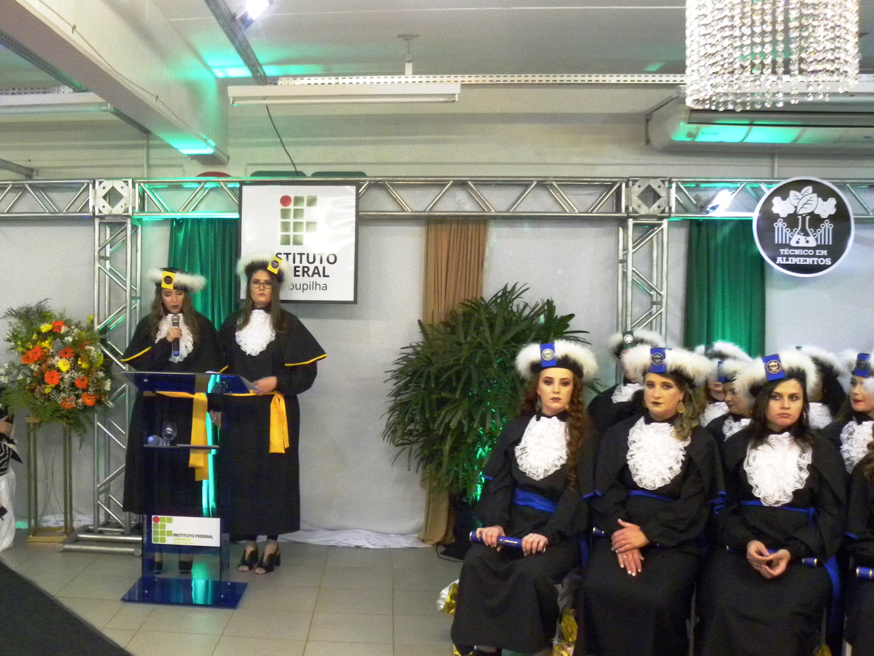 A mesa de honra foi composta pela diretora-geral, Renata Rotta; pela diretora de Ensino, Analice Marchezan; e os professores Lauri Mayer (coordenador do Técnico em Alimentos), Paula Klaick (patronesse da turma de Alimentos), Adriana Michelotti (paraninfa da turma de Alimentos), Valter Antônio Senger (coordenador do Técnico em Edificações), Rafaela Pereira Rodrigues (patronesse da turma de Edificações), Rodrigo Satolin (coordenador do Técnico em Meio Ambiente e paraninfo da turma), Luciane Oleques (patronesse da turma do Meio Ambiente), Lucas Tescke (coordenador do Técnico em Móveis e paraninfo da turma) e Silvie Jobim (patronesse da turma).