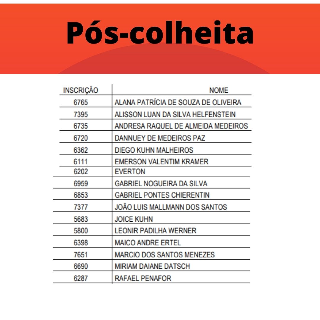 Pós-Colheita - 9 vagas - 2 anos de duração