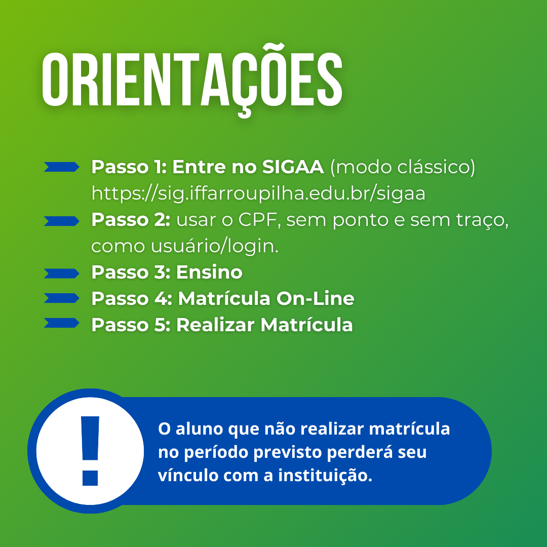 Importante: Estudantes que não realizarem a matrícula dentro do prazo perderão o vínculo com a instituição.