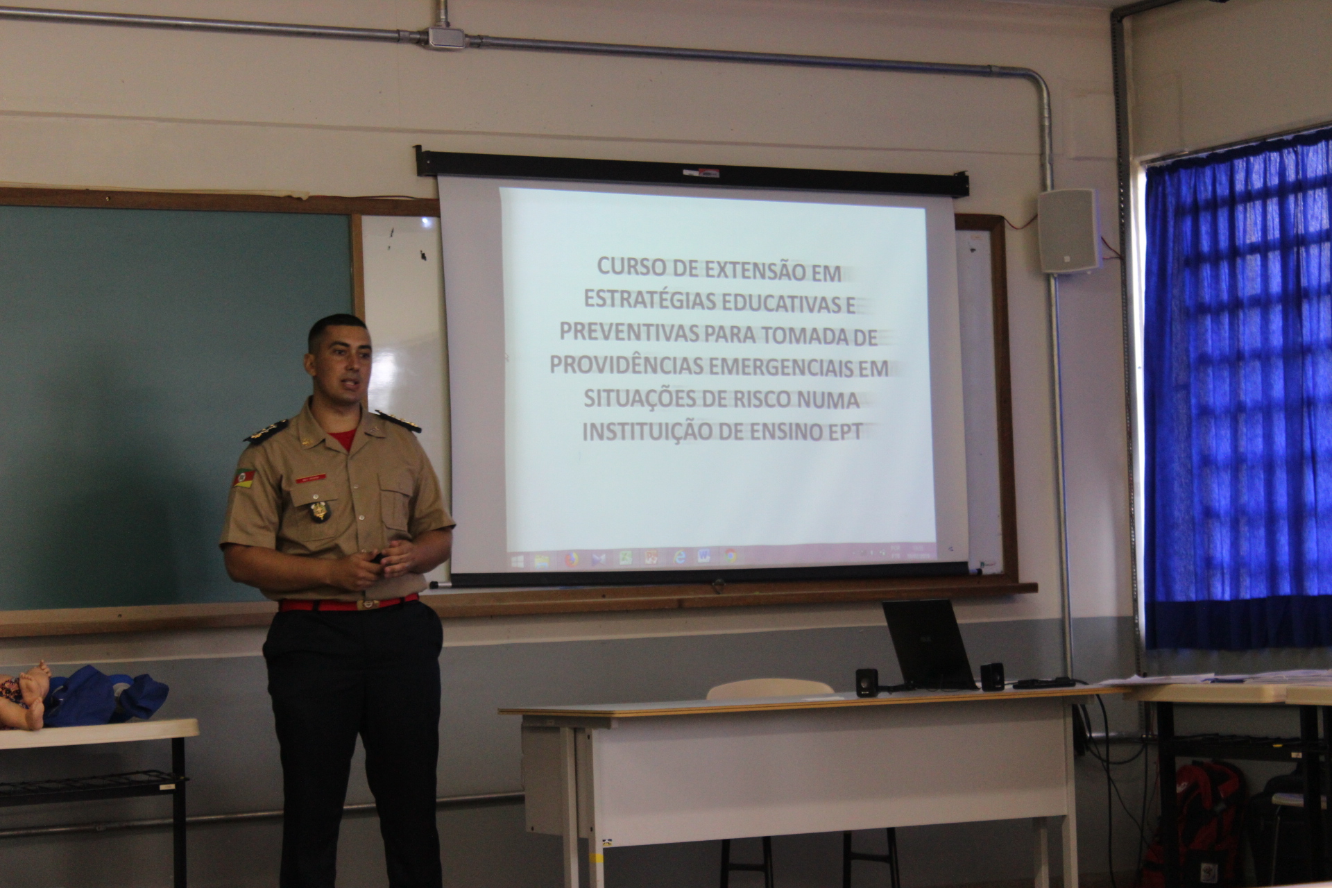 Mais de 30 servidores do IFFar – Campus Panambi participam de uma formação ofertada por integrantes do 12º Batalhão de Bombeiro Militar de Ijuí. O curso de extensão em “estratégias educativas e preventivas para tomada de providências emergenciais em situações de risco em uma instituição de ensino” visa suprir as necessidades dos servidores quanto à falta de atenção com a prevenção em ambientes de aglomeração de público, como é o caso do IFFar. Ao final da formação, intenciona-se que os participantes estejam aptos a tomar as primeiras medidas preventivas em uma situação emergencial.