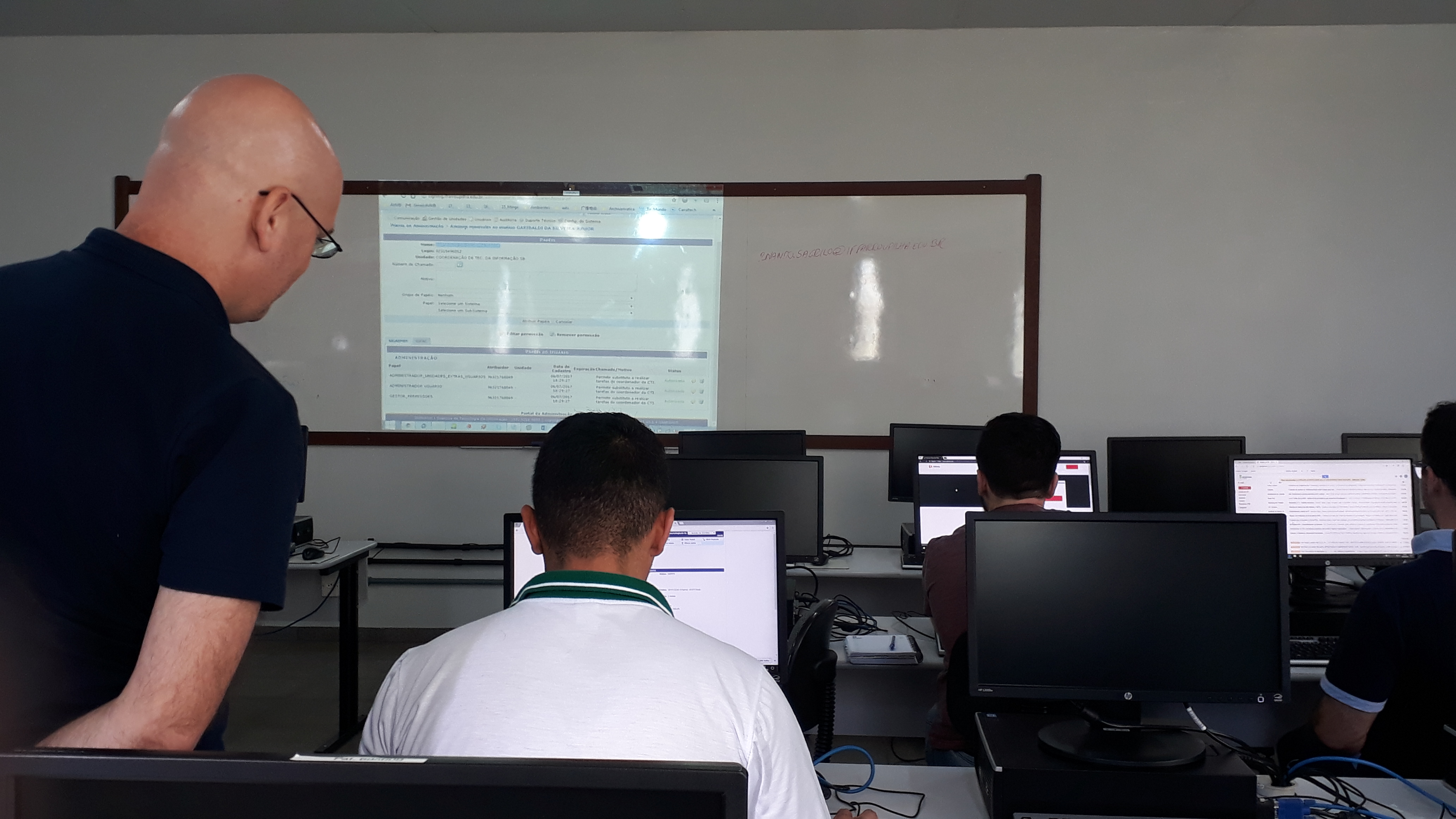 Ocorreu ontem, 09 de abril, no laboratório de informática do Campus Jaguari, treinamento do Módulo Contrato, Pagamento Online e liquidação de despesas do SIG.