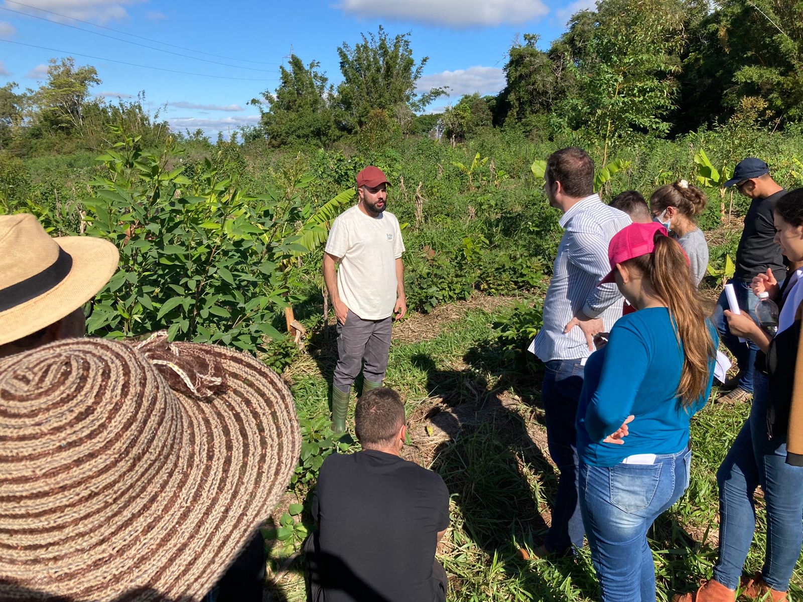 Na tarde de sábado, 09/04/2022, a sexta turma do curso de Especialização em Educação do Campo e Agroecologia do IFFar Campus Jaguari, realizou uma visita técnica na "Buena Onda Agroflorestal e Reserva Cerro Chapadão", localizadas na localidade do Chapadão/Jaguari e que trabalham com a agroecologia e possuem um sistema agroflorestal implantado e muito ativo para agregar conhecimentos práticos a partir das vivências e experiências compartilhadas pelos seus promotores, Lucas Gavioli Ganciné, Alexssandro Freitas e Juarez Gavioli.