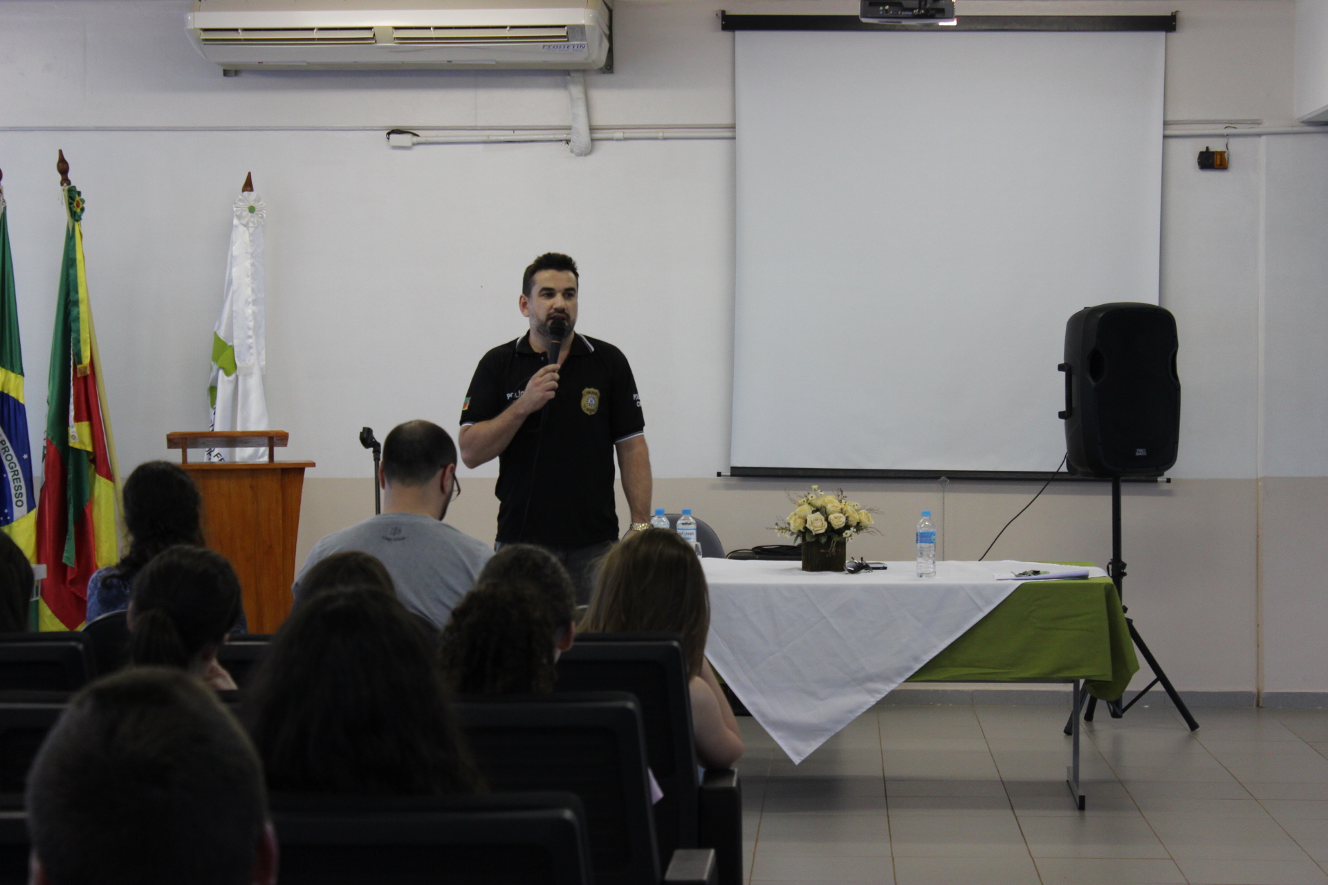 Na tarde da segunda, 12/11, alunos do ensino médio diurno do IFFar – Campus Panambi tiveram um “Papo de Responsa” com o Delegado da Polícia Civil, Gustavo Germano da Silva Fleury.