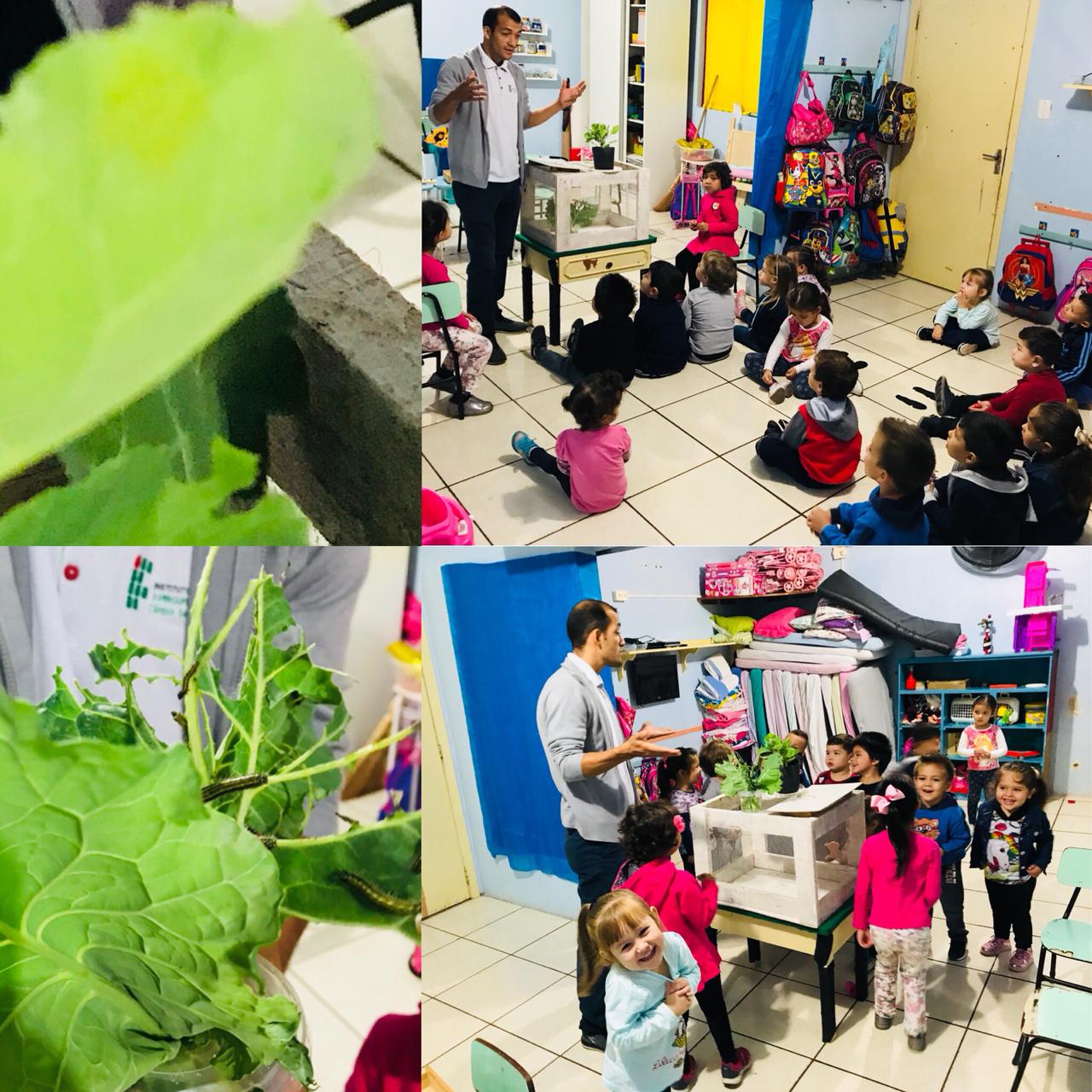 Ainda como atividade do projeto de extensão: “Espaço de ensino aprendizagem: sementes do viver e aprender” cadastrado no ano de 2018 e coordenado pelo TAE Ivan Jacson Preuss, os alunos do maternal 2 da Escola Municipal Theodomiro Luciano de Souza, puderam acompanhar as mudanças de fase da borboleta da couve.