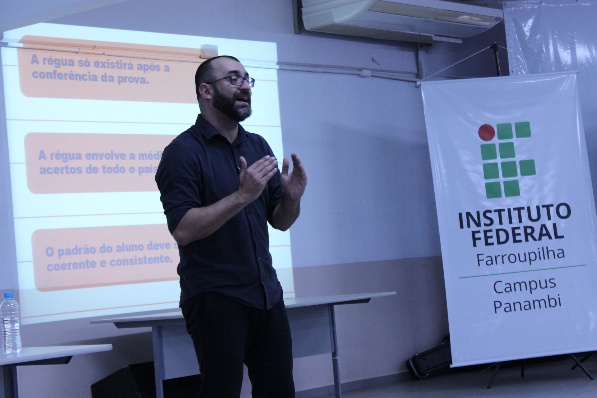 Durante a segunda-feira, 12/08, chegou a vez dos discentes de 2º e 3º ano do IFFar – Campus Panambi participarem do projeto de extensão “Por Dentro do Enem”. No turno da manhã os alunos assistiram uma fala com o professor Helder Renato Vieira, do Totem Vestibulares de Santa Maria, que explicou como é formatada a prova do Enem, com base na Teoria Resposta ao Item (TRI), além dos usos da nota para ingresso em cursos superiores, seja via Sisu ou outro tipo de seleção.