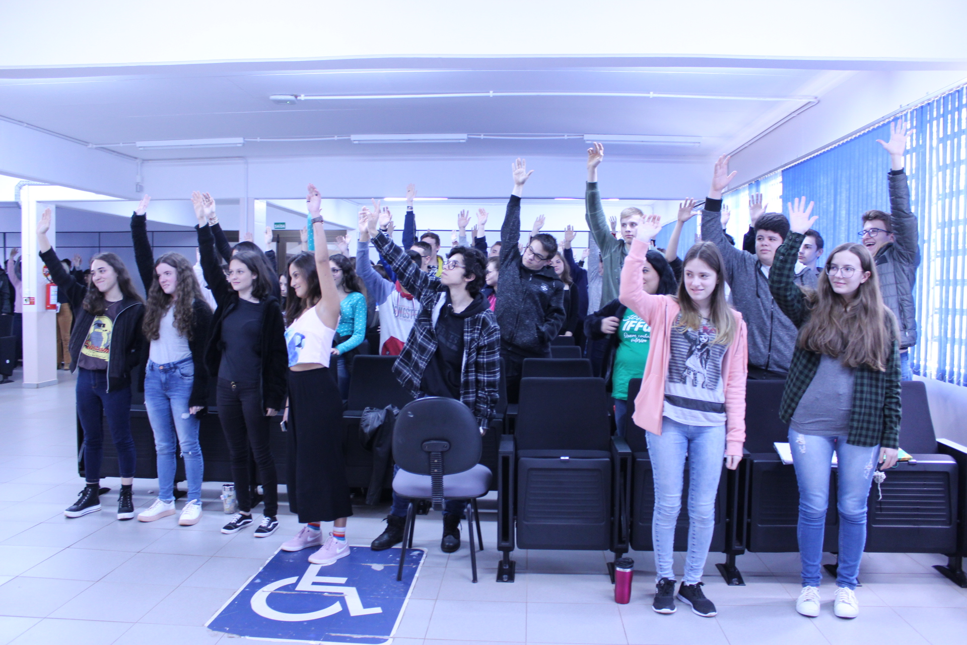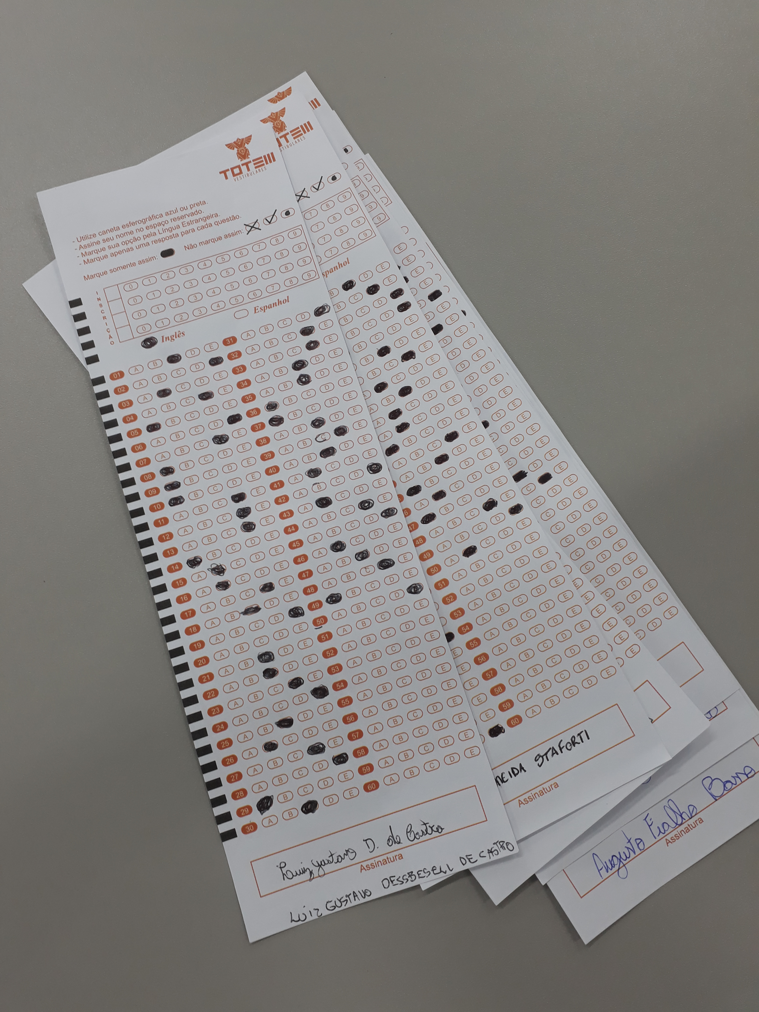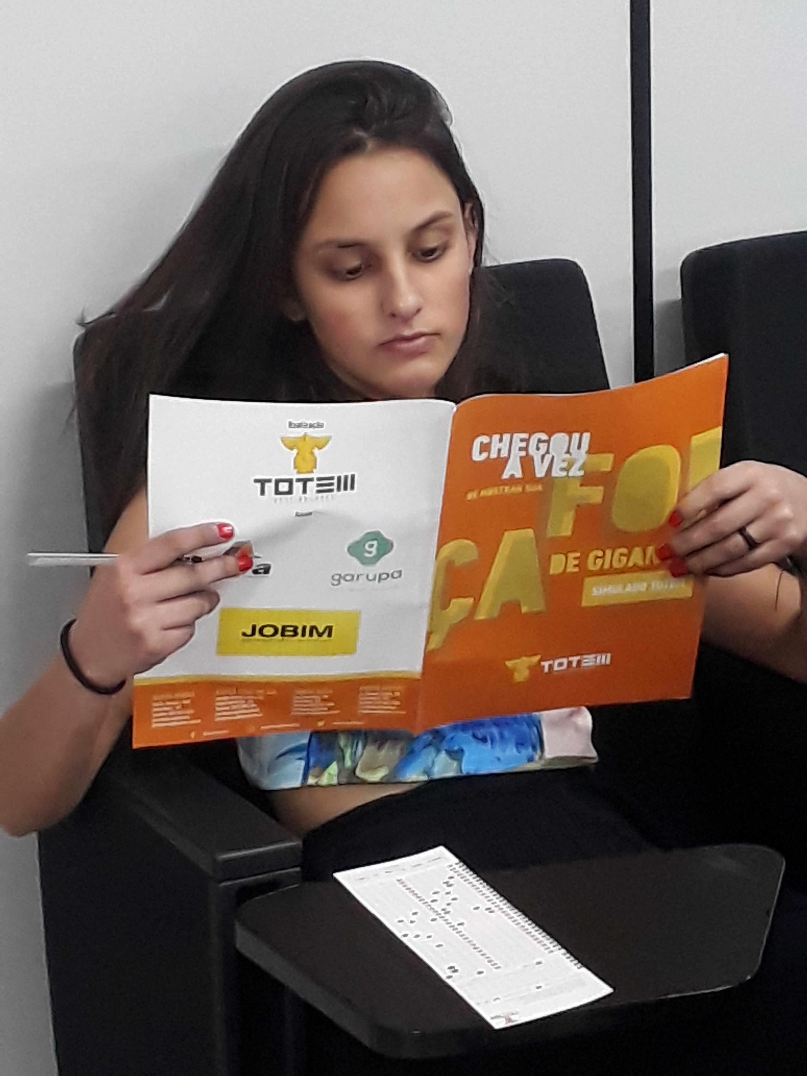 À tarde a atividade ficou restrita a discentes dos 3ºs anos, que realizaram um simulado com foco em conteúdos, tipo de questões e tempo destinado à resolução de cada questão, com base no Exame Nacional do Ensino Médio.
