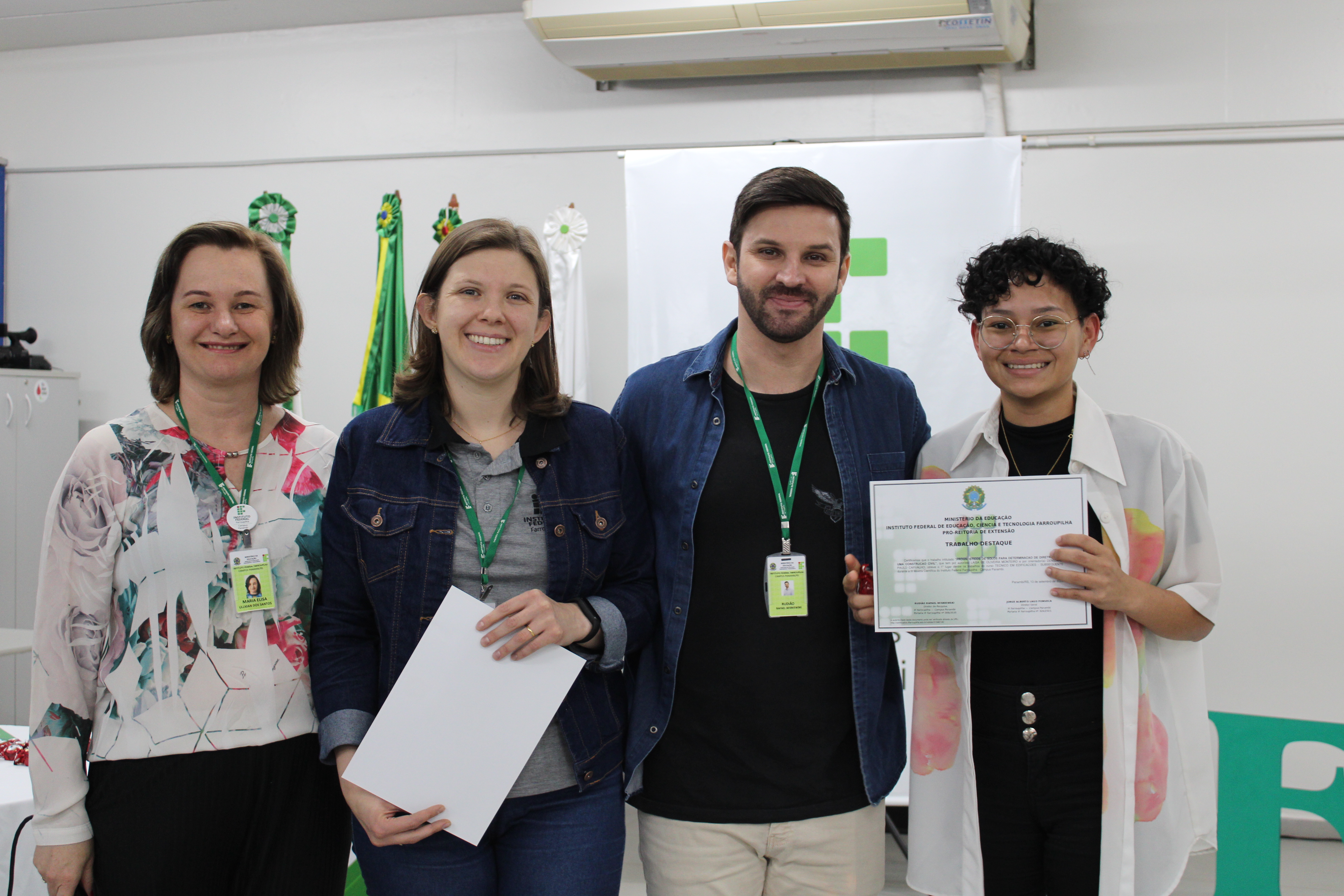 O melhor trabalho de cada curso recebeu um certificado com a menção de destaque, além de um dos trabalhos ter sido reconhecido também como o melhor de toda a Mostra Científica. Trata-se do trabalho “O ensino de química no PROEJA: a integração dos conhecimentos básicos e técnicos”, de autoria da estudante Débora Gabriele da Silva, do Curso de Licenciatura em Química, em coautoria com Julia Alessandra Janke de Oliveira e orientado pela professora Karine Bueno do Nascimento.