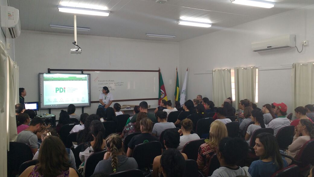 Na última quarta-feira, dia 7 de março, a Comissão de Planejamento Estratégico e a Comissão Local do PDI realizou reunião geral com os servidores do Campus São Vicente do Sul para apresentação da metodologia de trabalho da primeira etapa de revisão do Plano de Desenvolvimento Institucional (PDI) do Instituto Federal Farroupilha. Este primeiro momento tratará da reformulação da missão, visão e valores institucionais, bem como dos objetivos estratégicos da instituição.