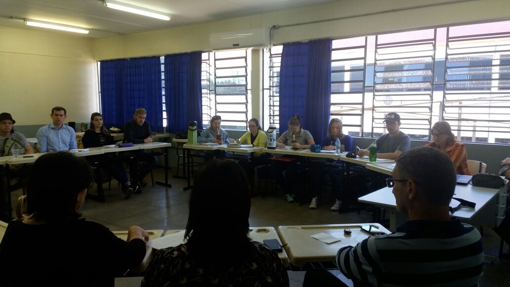 Os alunos receberam as equipes diretivas das Escolas Estaduais Poncho Verde e José de Anchieta, bem como a direção geral do IFFar - Campus Panambi, para dialogar sobre o processo de gestão democrática das escolas, analisando os desafios enfrentados e as possibilidades que o processo oferece para melhoria da qualidade da educação.