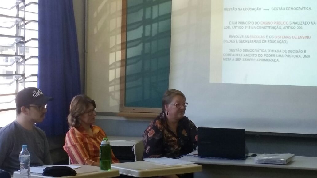 De acordo com a professora Sylvia, os gestores expuseram aos alunos “como se dá esse processo em suas escolas, envolvendo os aspectos administrativos, financeiros e pedagógicos, oportunizando, aos nossos alunos e futuros docentes, o conhecimento sobre a legislação que embasa a gestão democrática escolar, bem como a efetivação do processo no dia-a-dia da escola, pois gestão democrática não significa apenas a eleição da direção, mas uma caminhada diária na busca da inclusão/participação de todos os segmentos da comunidade escolar nos rumos e objetivos que a escola pretende atingir”.