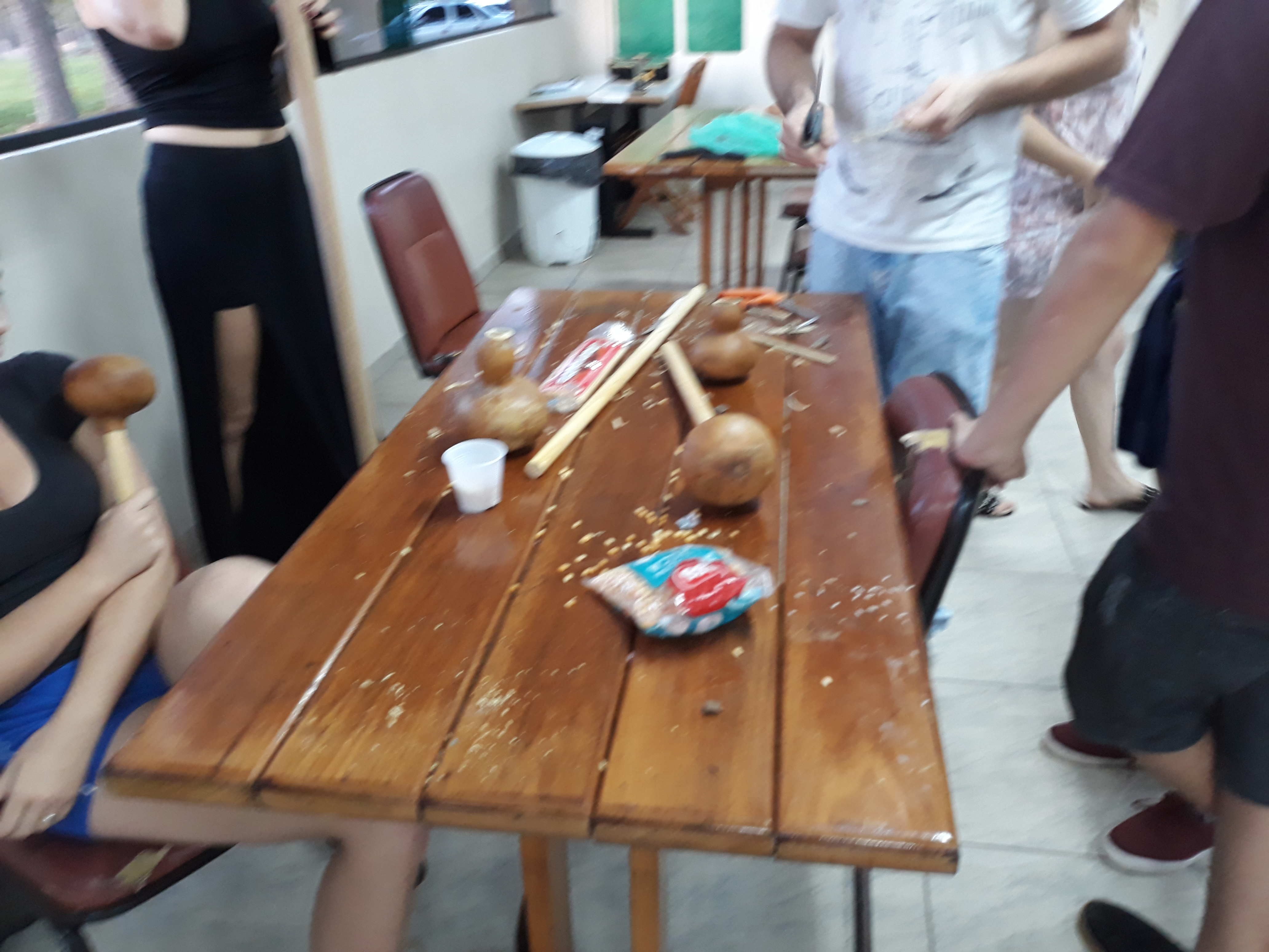Na tarde de quinta-feira, 26/04/2018, das 17h às 19h, estudantes do ensino médio integrado e servidores do campus Jaguari participaram da oficina sobre instrumentos indígenas, promovida pelo professor Ivan Schwan, no Centro de Convivência do campus. A atividade teve como objetivo evidenciar as influências das tradições indígenas na cultura sul-riograndense. A ação foi promovida pelo NEABI/Jaguari (Núcleo de Estudos Afro-brasileiros e Indígenas), NAC (Núcleo de Arte e Cultura) e, ainda, contou com o apoio da CAE (Coordenação de Assitência Estudantil).