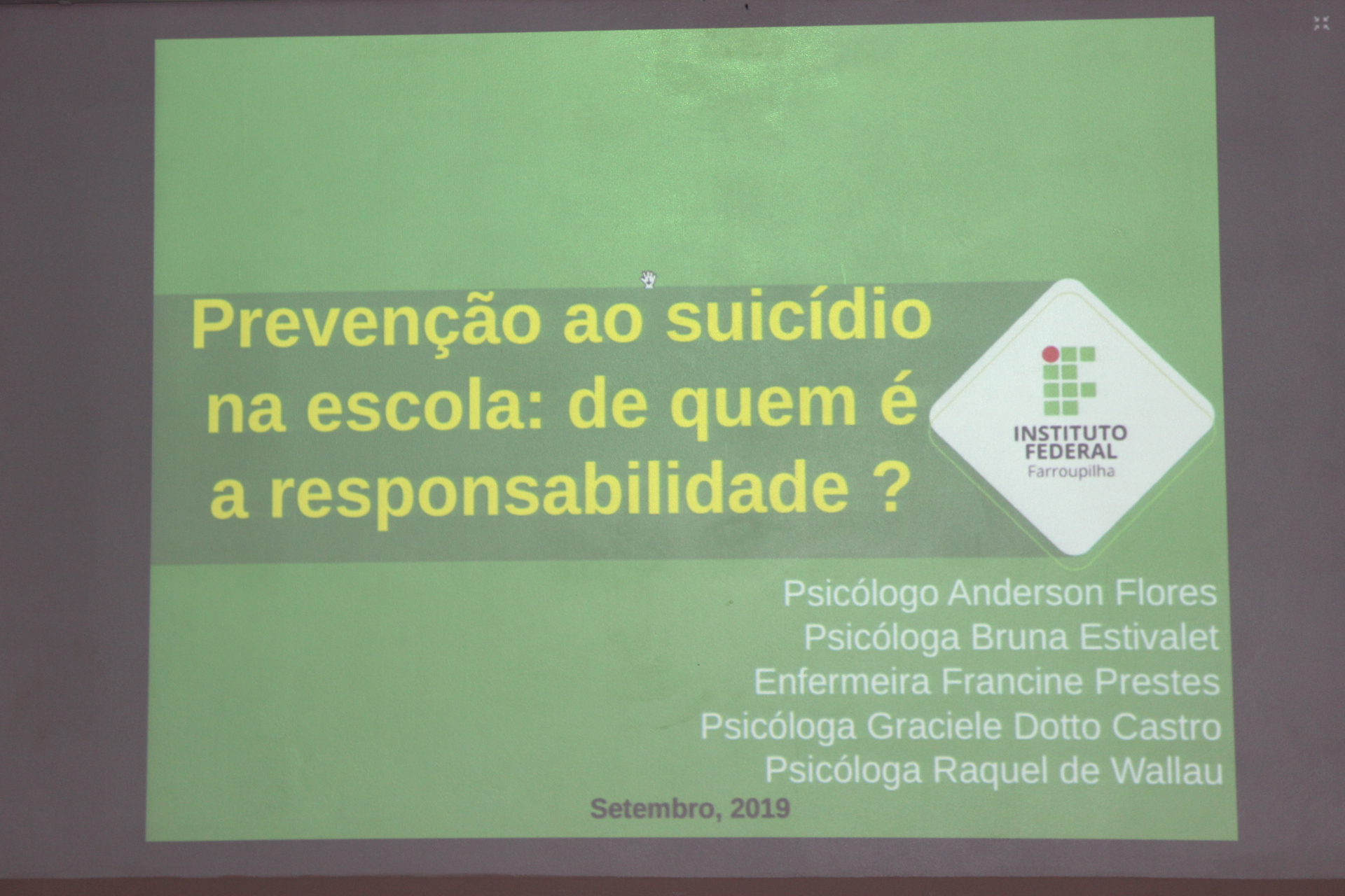 Além dessas ações está sendo planejada uma atividade formativa para servidores, a ser ofertada por um grupo de outra instituição. As atividades da campanha “Setembro Amarelo: é preciso falar” serão desenvolvidas até dezembro de 2018, de modo a contemplar todas as turmas do IFFar – Campus Panambi.