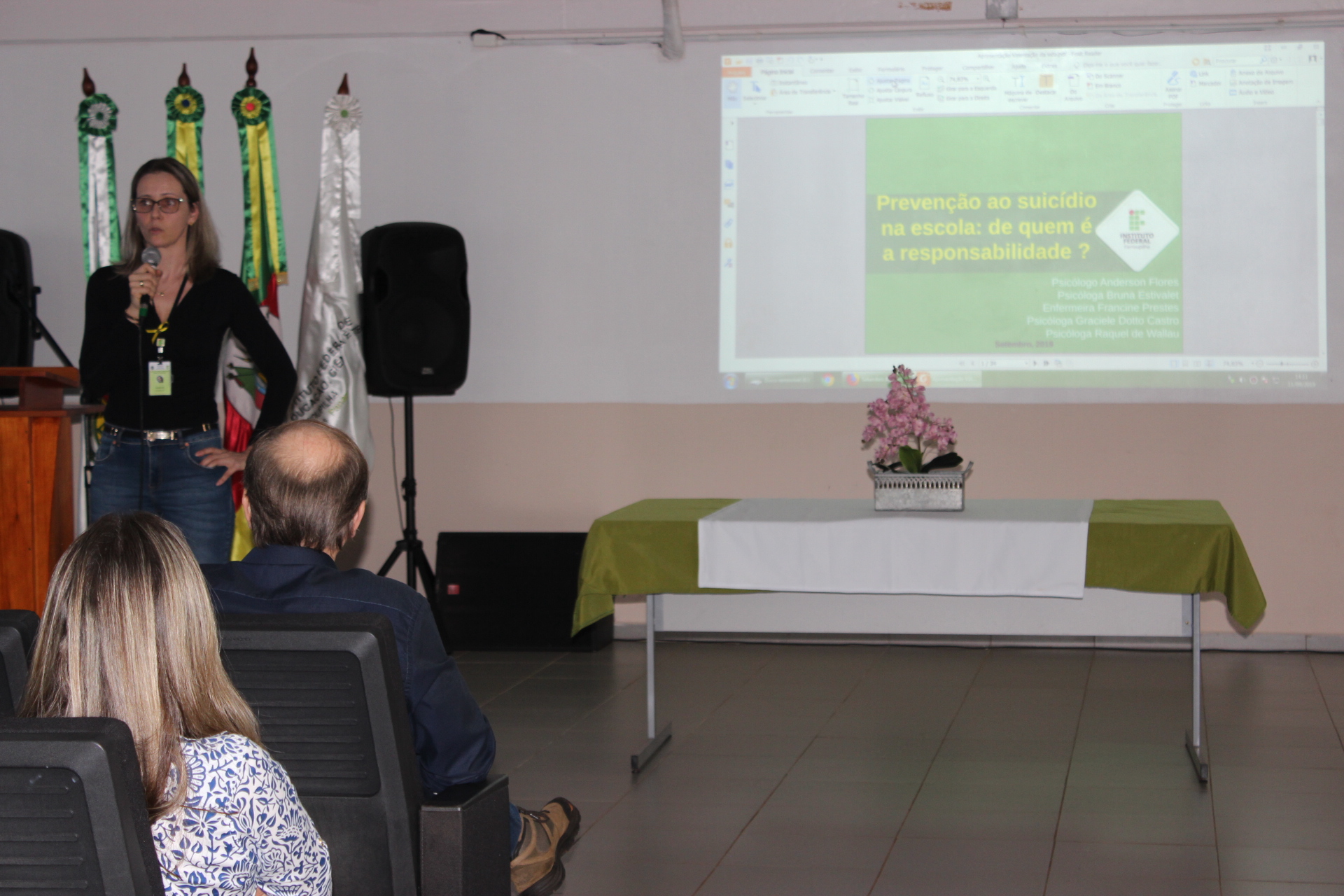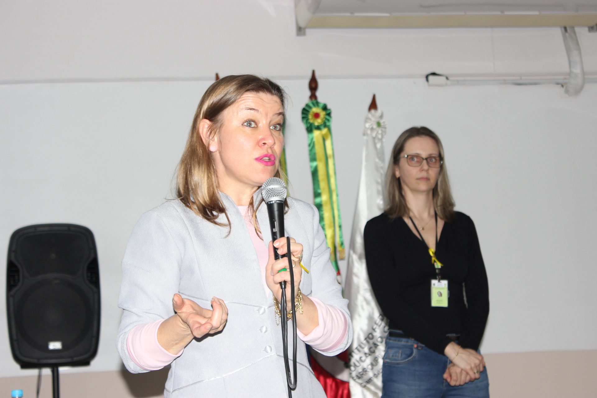 A formação foi ministrada pelas psicólogas Raquel Wallau e Solange Ester Koehler e teve como tema “Prevenção de suicídio na escola: de quem é a responsabilidade?”. Durante a apresentação foram abordados conceitos de prevenção, acolhimento, comportamentos potencialmente suicidas, além de ser reforçado que todos os servidores possuem responsabilidades compartilhadas pela escuta, uma vez que “a escola é um lugar de prevenção e todos são responsáveis pela acolhida, devendo estar atentos aos fatores de riscos que envolvem cada aluno/a”, afirmou Raquel.