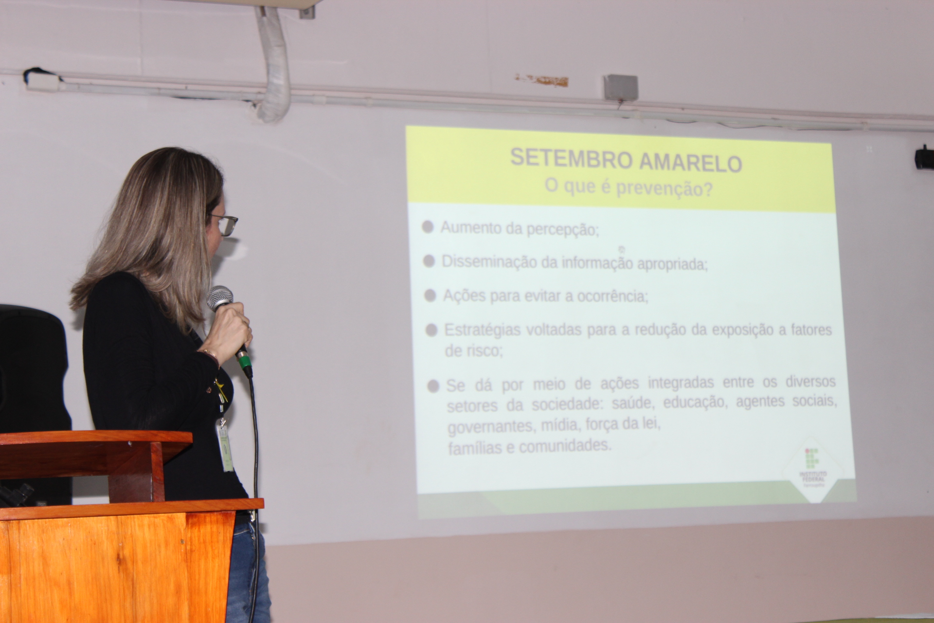 A formação sobre o tema foi uma das atividades relacionadas ao Setembro Amarelo, que ainda terá rodas de conversas com os discentes do Campus e intervenções em sala de aula para difundir a ideia de que "Falar de suicídio não é tabu".