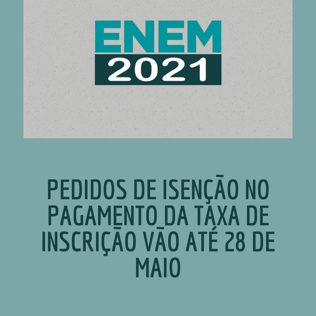Os pedidos de isenção da taxa de inscrição do Exame Nacional do Ensino Médio (Enem) 2021 podem ser feitos até dia 28 de maio, pela página do Instituto Nacional de Estudos e Pesquisas Educacionais Anísio Teixeira (Inep) enem.inep.gov.br/participante.