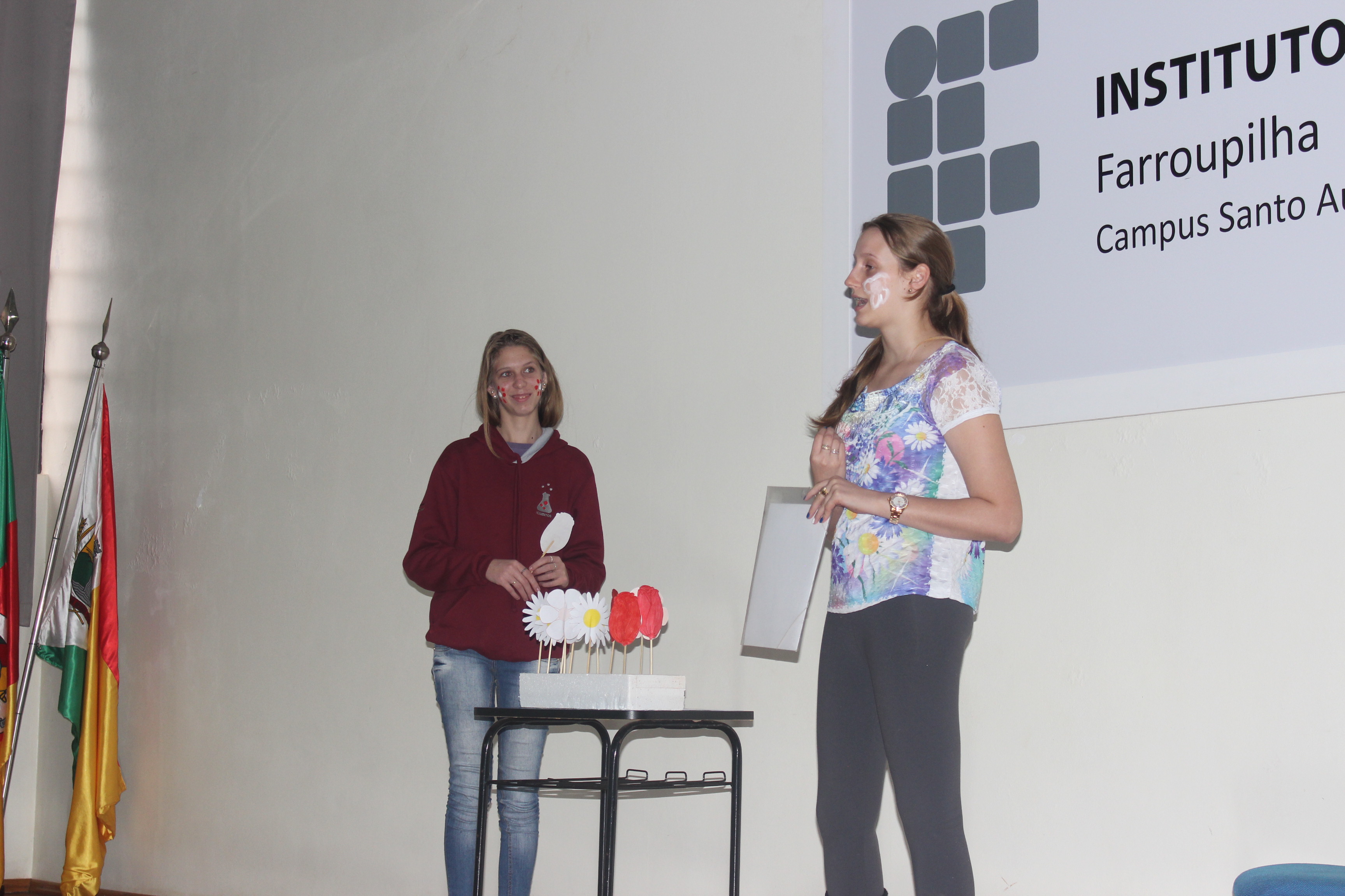 Eis um ótimo exemplo disso: a turma do 1º Alimentos, na introdução à Literatura, teve a oportunidade de produzir poemas com o tema “Literatura: a arte da palavra”. Já a turma do 2º Alimentos, nos estudos do estilo literário Romantismo, foram instigados a produzir um poema intertextual da Canção do Exílio, de Gonçalves Dias. Ao tomar conhecimento dos poemas que os alunos haviam feito, sob a coordenação da Professora de Português e Inglês, Marcia Aguiar, a Professora de Artes, Janaina Feller decidiu lançar um desafio aos alunos: transformar os seus poemas em representações teatrais.