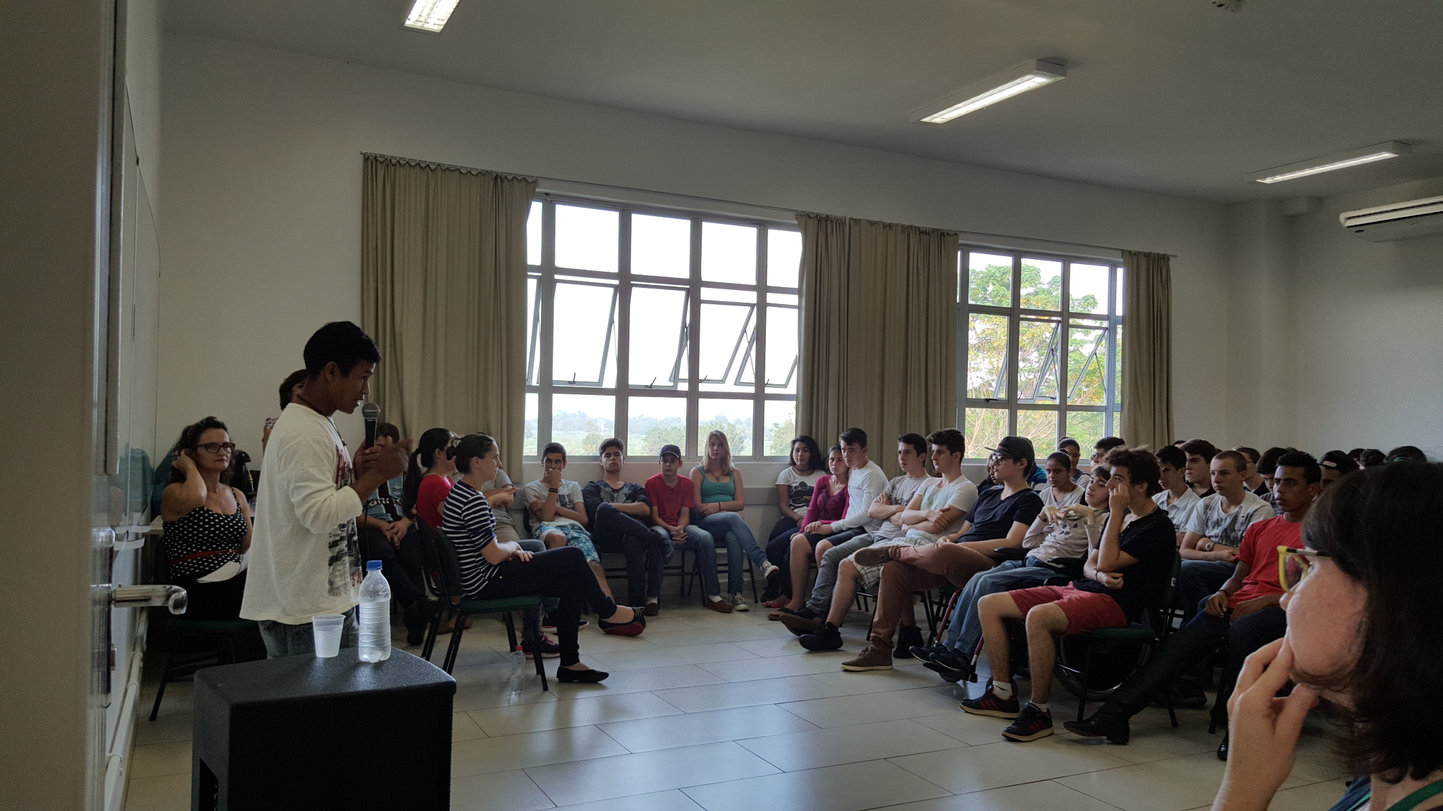 O Instituto Federal Farroupilha Campus Santo Ângelo, por meio do Núcleo de Estudos Afro-brasileiros e Indígenas (NEABI), realizou uma palestra com o Cacique Anildo, da aldeia guarani Tekoa Pyau. A atividade faz referência ao dia do índio, comemorado no dia 19 de abril. Participaram da atividade os alunos ingressantes dos cursos diurnos. Na oportunidade, o Cacique Anildo falou sobre a sua cultura, seus ritos, sobre a relação com a natureza e com a sociedade.
