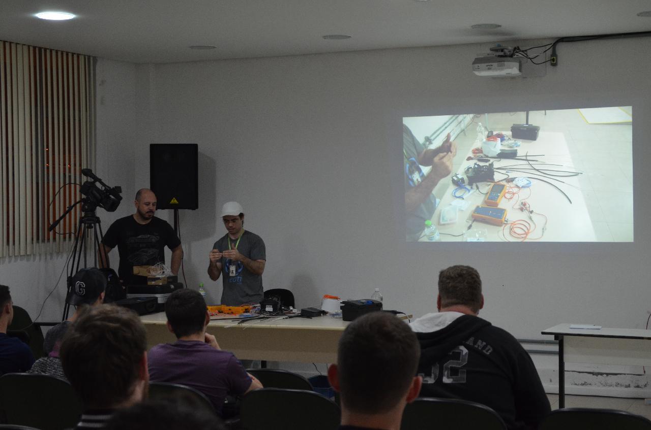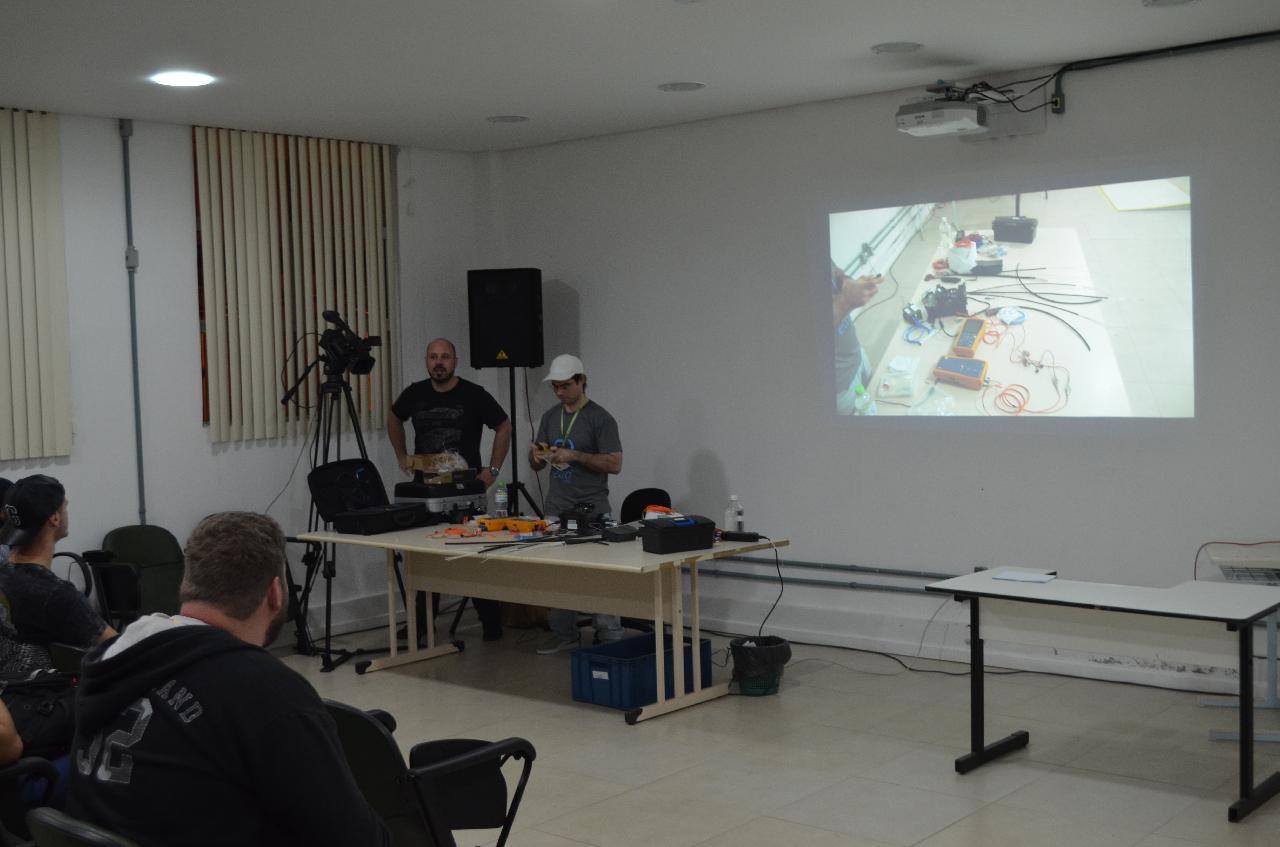 O espaço foi proposto para aprender um pouco mais sobre os equipamentos necessários para realizar a fusão de fibra ótica e seus diferentes tipos, aplicações e concetores.