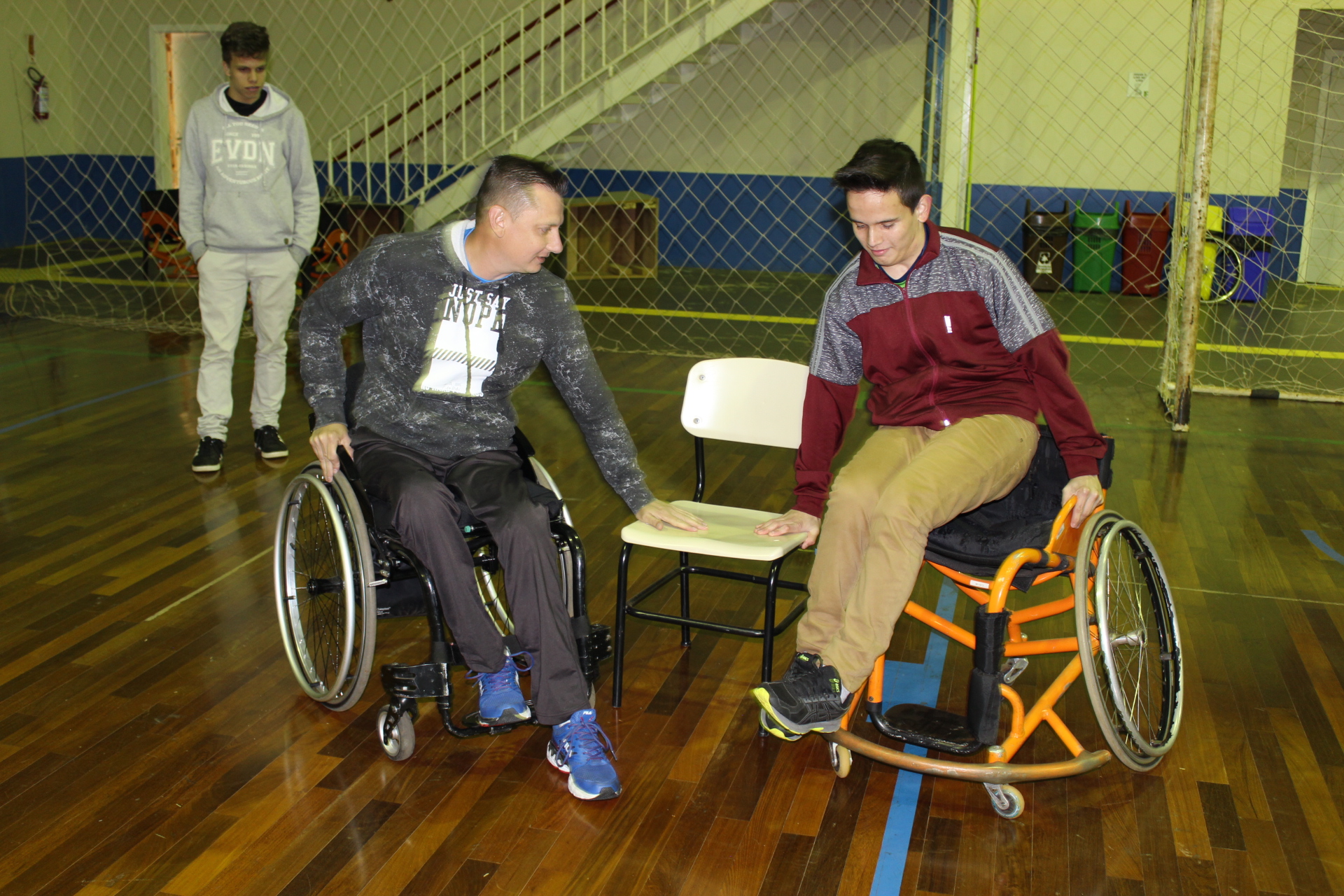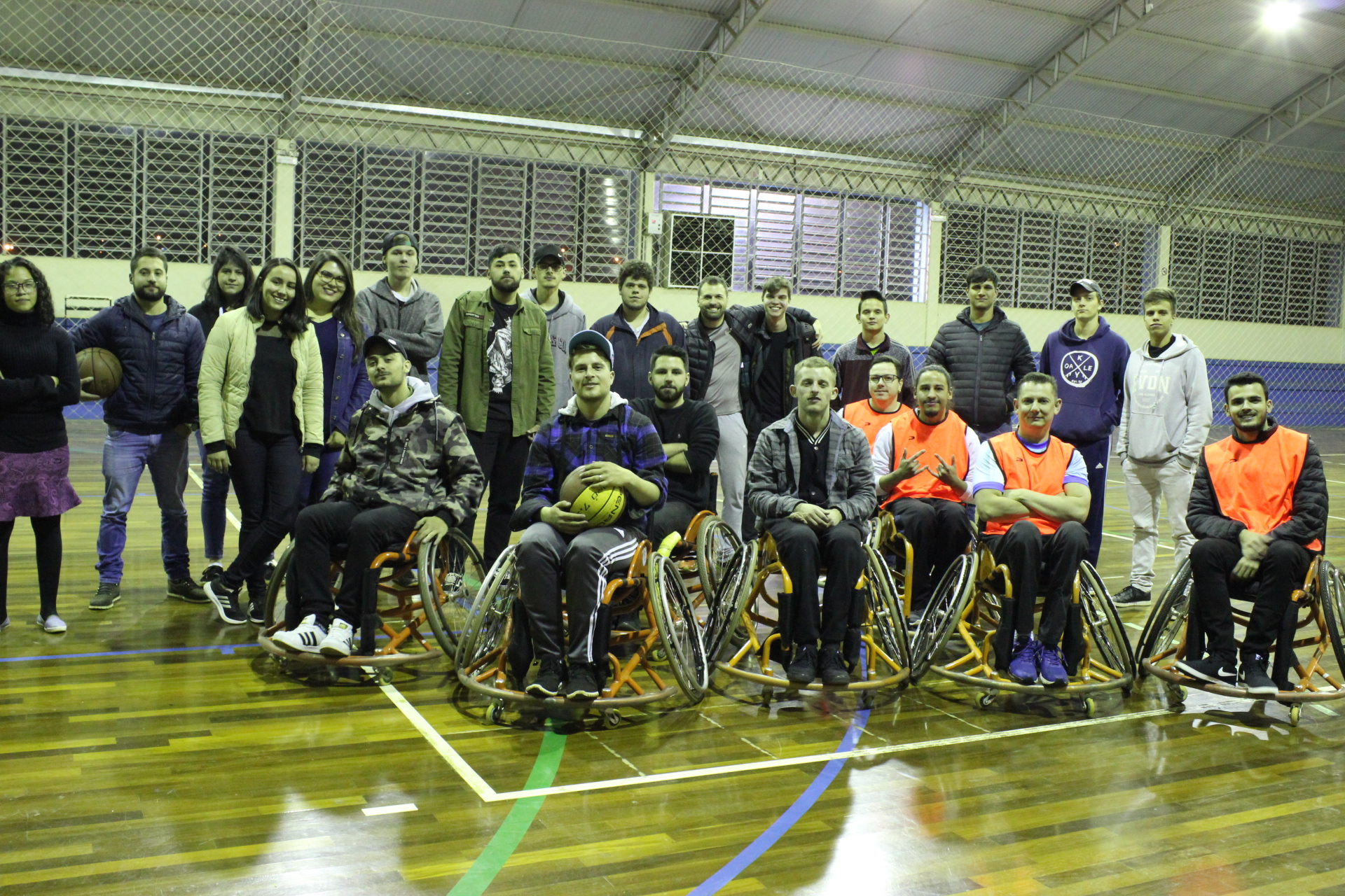 Para inserir os alunos em um dos itens da ementa - Inclusão social e escolar - os alunos participaram, inicialmente, da Oficina de Basquete sobre Rodas, sob coordenação do Prof. Jaubert Menchik, com o apoio de bolsistas do projeto.