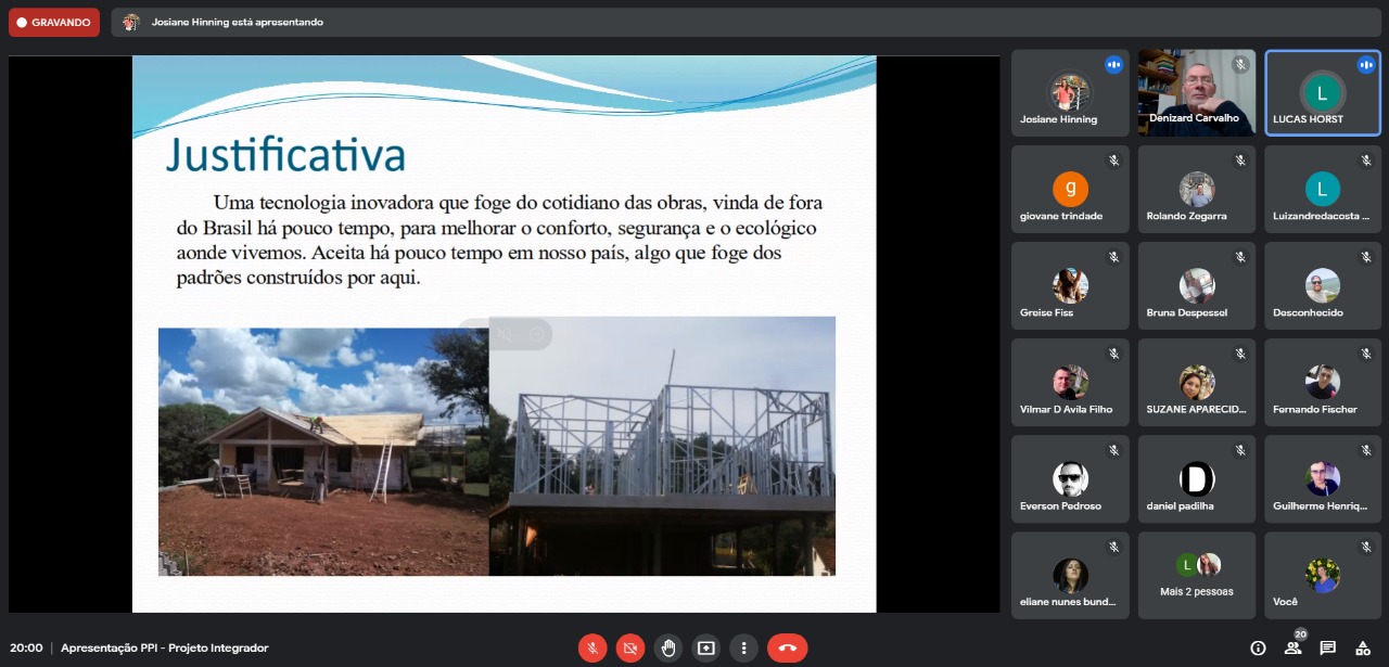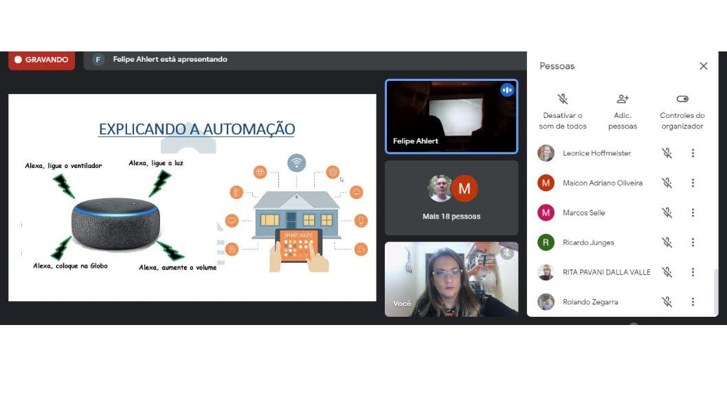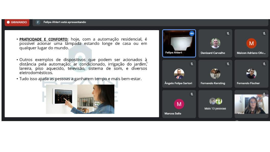 A professora Josiane Pillar Hinning, Coordenadora do Curso, organizou uma live com representantes da empresa Brain House, que abordaram o tema “Edificações Inteligentes a partir da Automação”. A atividade contou também com uma visita virtual à empresa, na qual foi demonstrada a automação da parte do acionamento de persianas, luz e som, além de outros dispositivos que podem ser utilizados em edificações inteligentes, ou Smart Buildings.