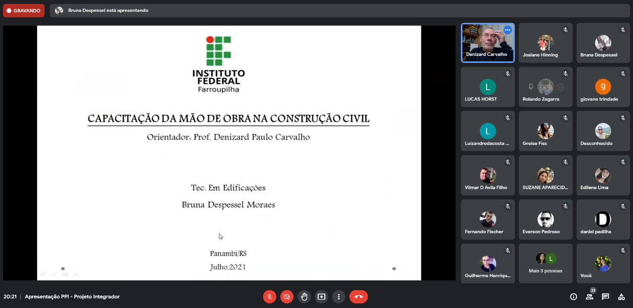 Nos dias 19 e 20 de julho as Turmas do Curso Técnico em Edificações Subsequente apresentaram seus trabalhos de Práticas Profissionais Integradas (PPIs). Os temas escolhidos para os trabalhos foram tão diversificados quanto são as possibilidades de atuação do profissional. Confira!