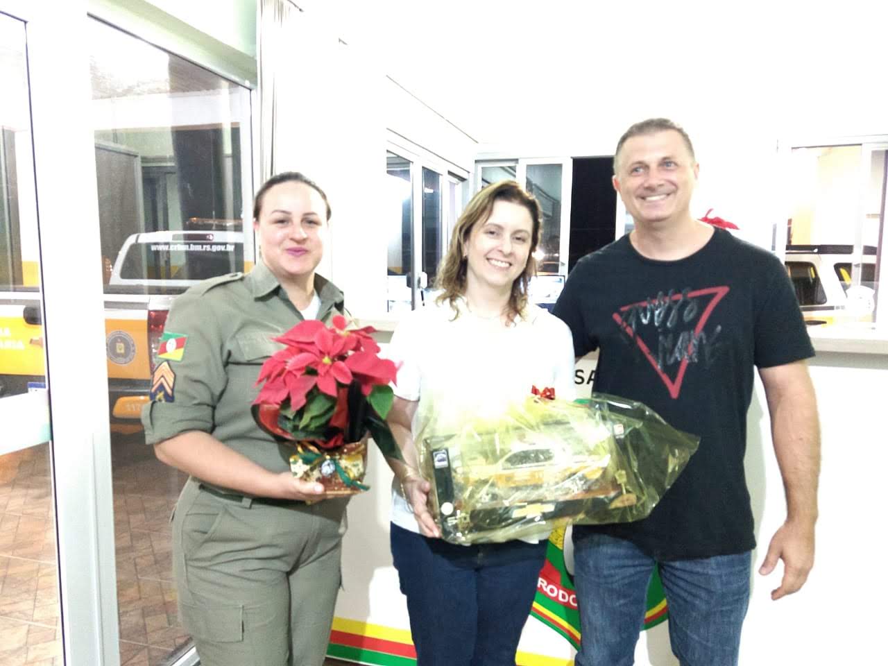 Na ocasião, os representantes do Batalhão Rodoviário receberam o Termo de Doação do projeto. O evento contou com a presença da diretora-geral, Renata Rotta; do coordenador do curso, professor Juliano Moreira Coimbra; dos professores Lucas Tescke e Silvie Jobim; do laboratorista, Pedro Galina e dos alunos do 4° semestre do curso Técnico em Móveis Subsequente. Como mimo, a diretora Renata Rotta recebeu uma réplica da viatura da Polícia Rodoviária com adesivo personalizado ao IFFar - Campus Santa Rosa.