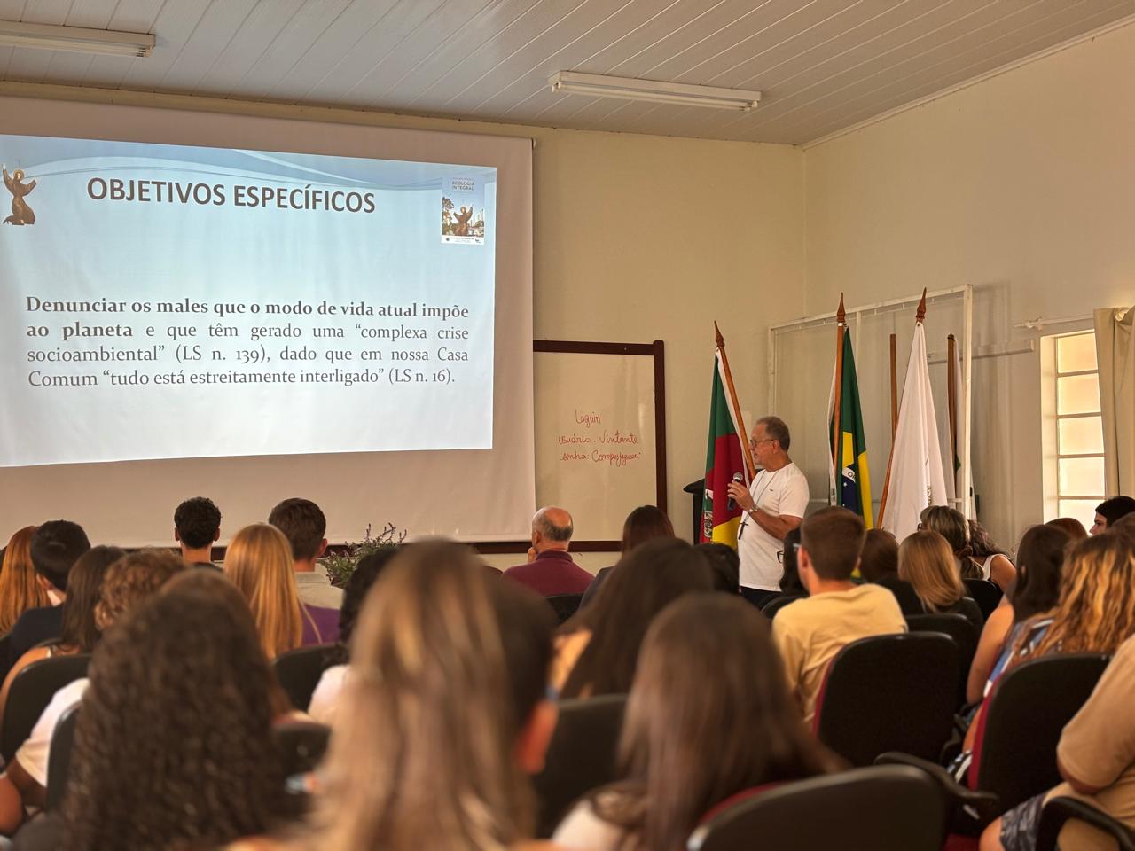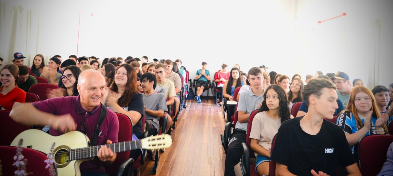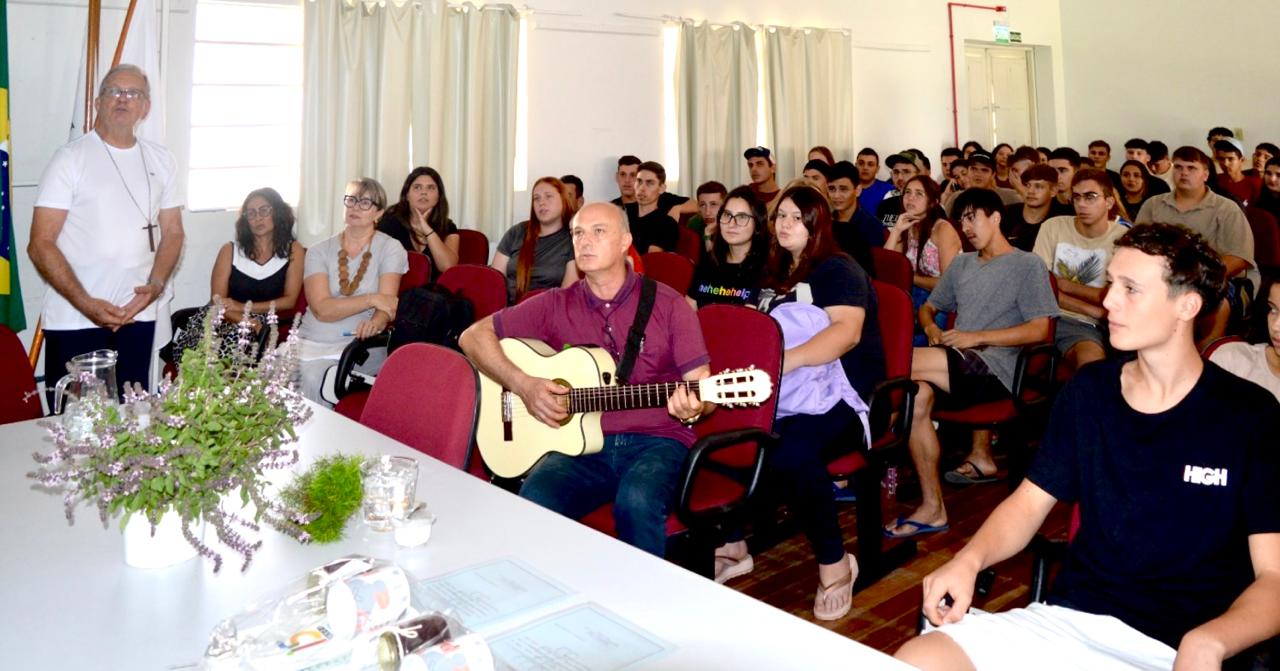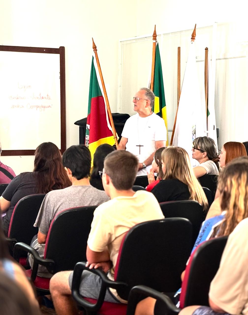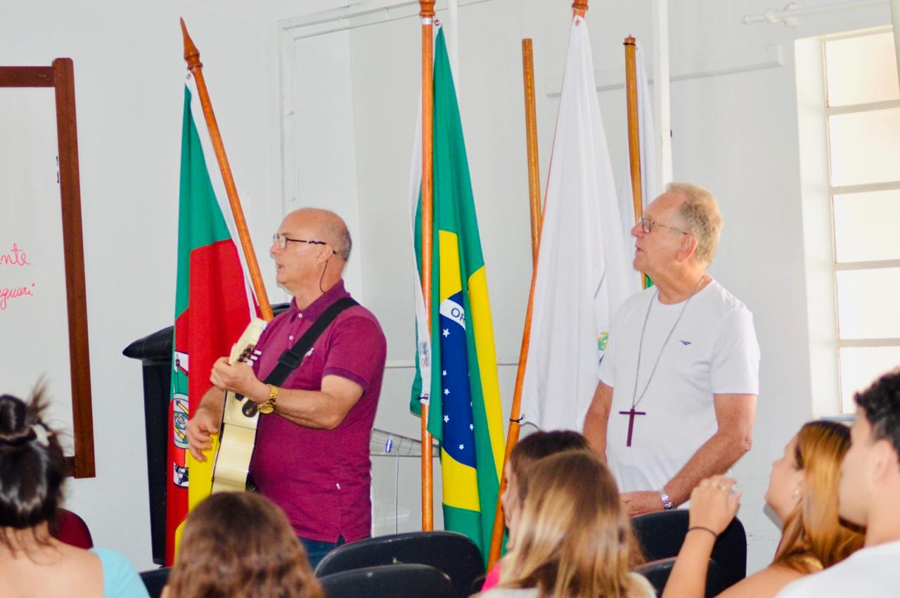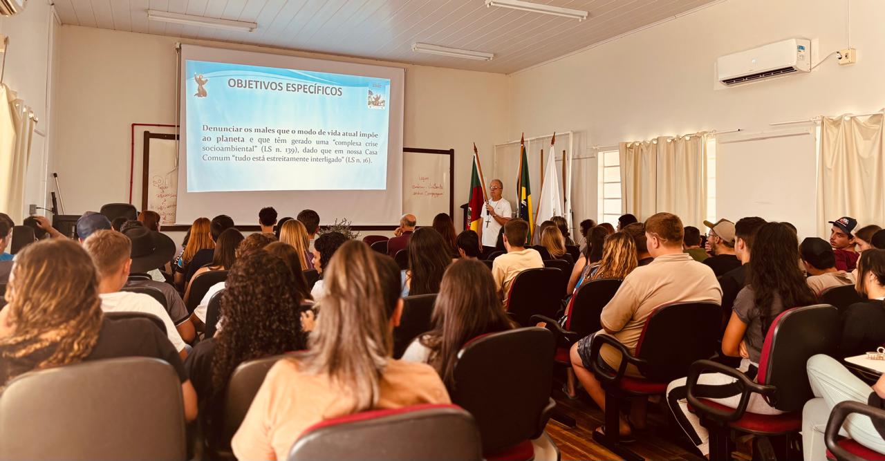 No dia 24 de fevereiro de 2025 teve início, no Campus do IFFar em Jaguari, a primeira atividade do projeto de Ensino “Jardim de conhecimento: Educação ambiental e sustentabilidade”. Nesta oportunidade, o bispo emérito de São Gabriel da Cachoeira – Amazonas, Dom Edson Damian, acompanhado pelo pároco da Paróquia Imaculada Conceição de Jaguari, Saulo Faccin, conduziram uma conversa sensibilizadora e motivacional com os estudantes do Campus sobre a importância do cuidado com o meio ambiente e nossa casa comum. Além disso, foi apresentada a Campanha da Fraternidade 2025 que tem como tema “Fraternidade e Ecologia Integral”.
