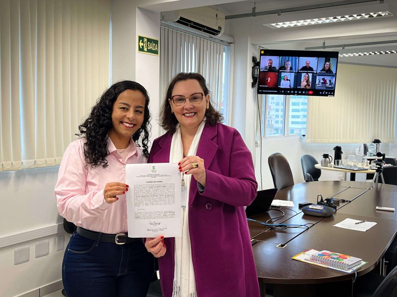 Janiele de Matos Corrêa, empossada como Técnica em Agropecuária, ao lado da reitora do IFFar, professora Nídia Heringer.