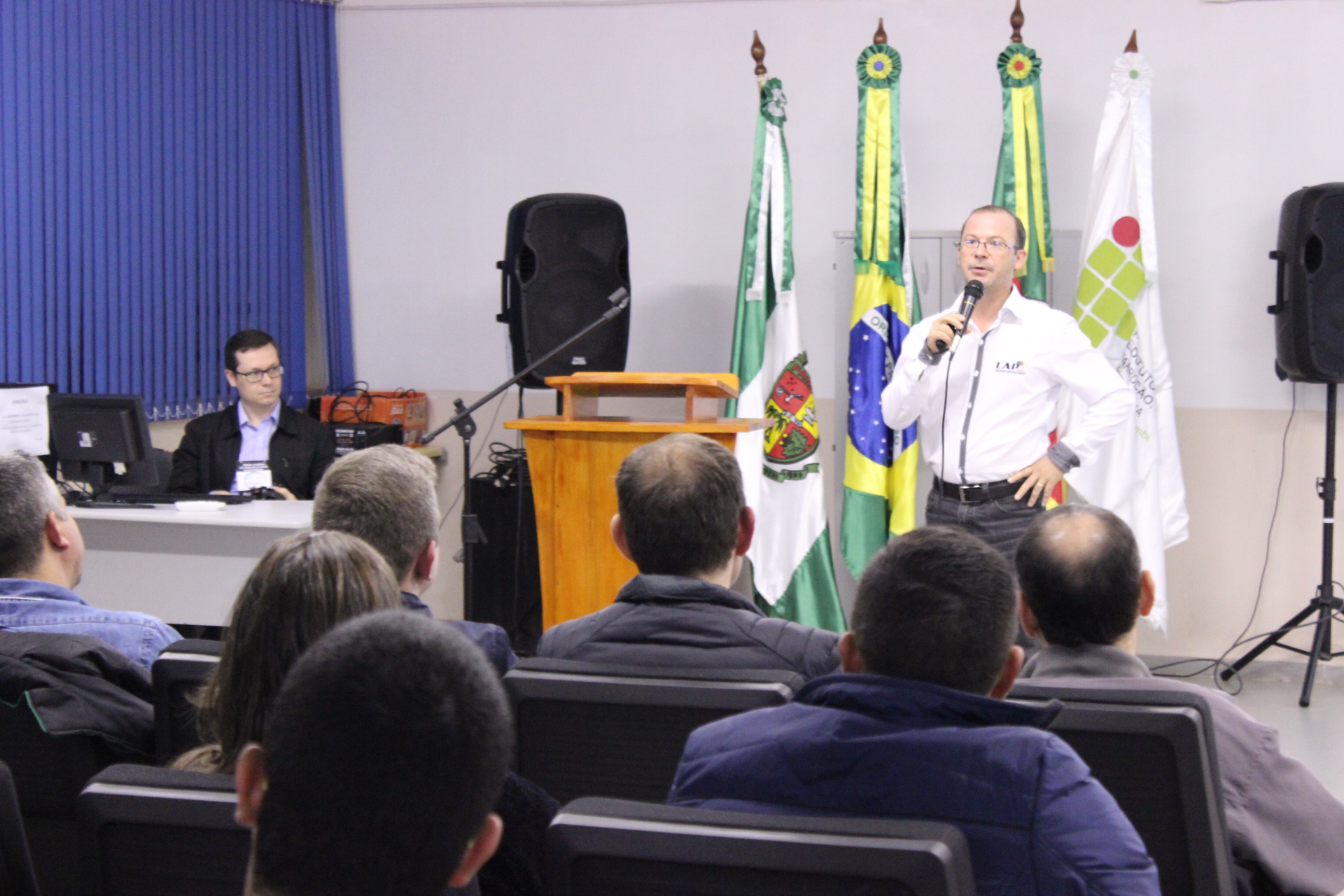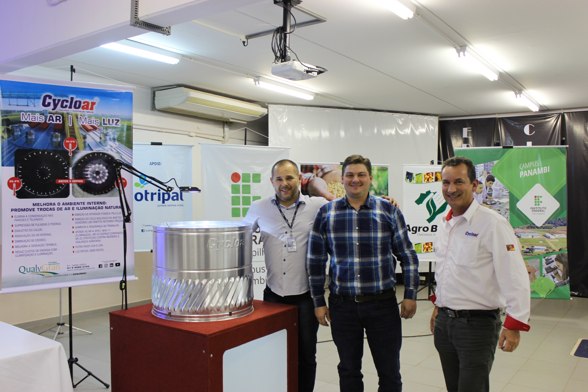 O evento finalizou com a palestra do engenheiro mecânico Rafael Dornelles Teixeira, da Cycloar Exaustores, que falou sobre “Exaustor eólico, qualidade de grãos e conforto de operadores em unidades de armazenamento”. Ao final da explanação o palestrante realizou a doação de um equipamento demonstrativo para remoção de bolsões de ar quente dos silos. O material será utilizado por alunos dos cursos de Pós-Colheita e Produção de Grãos do Campus Panambi.