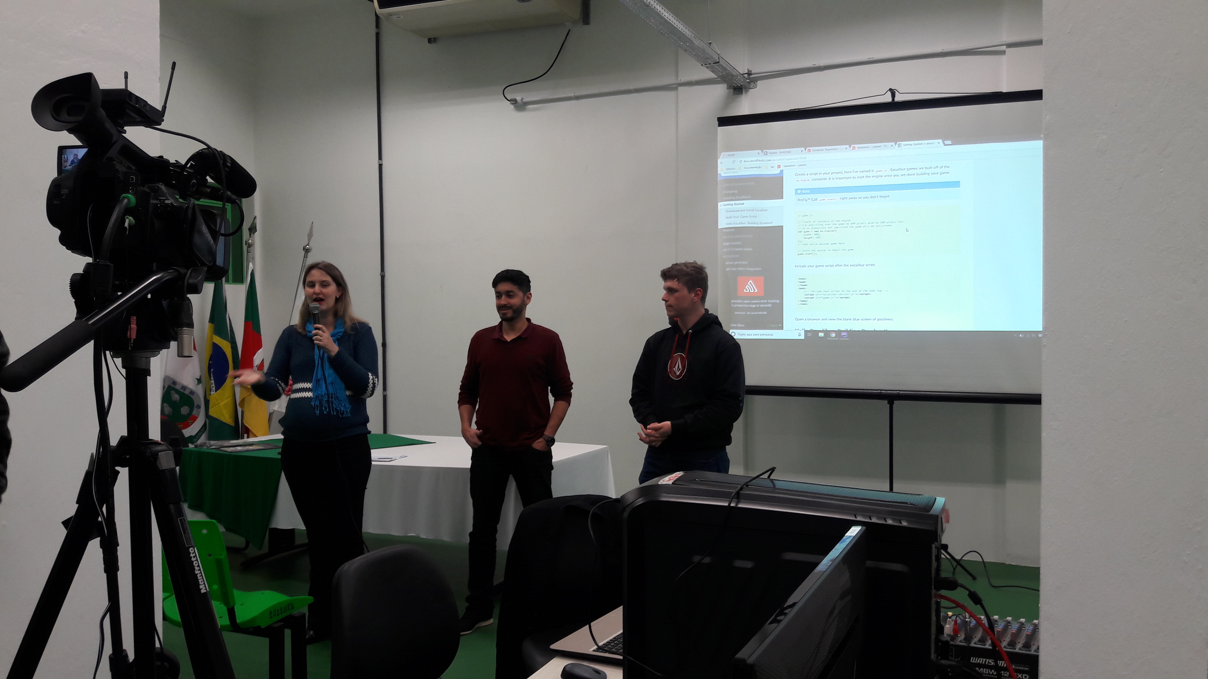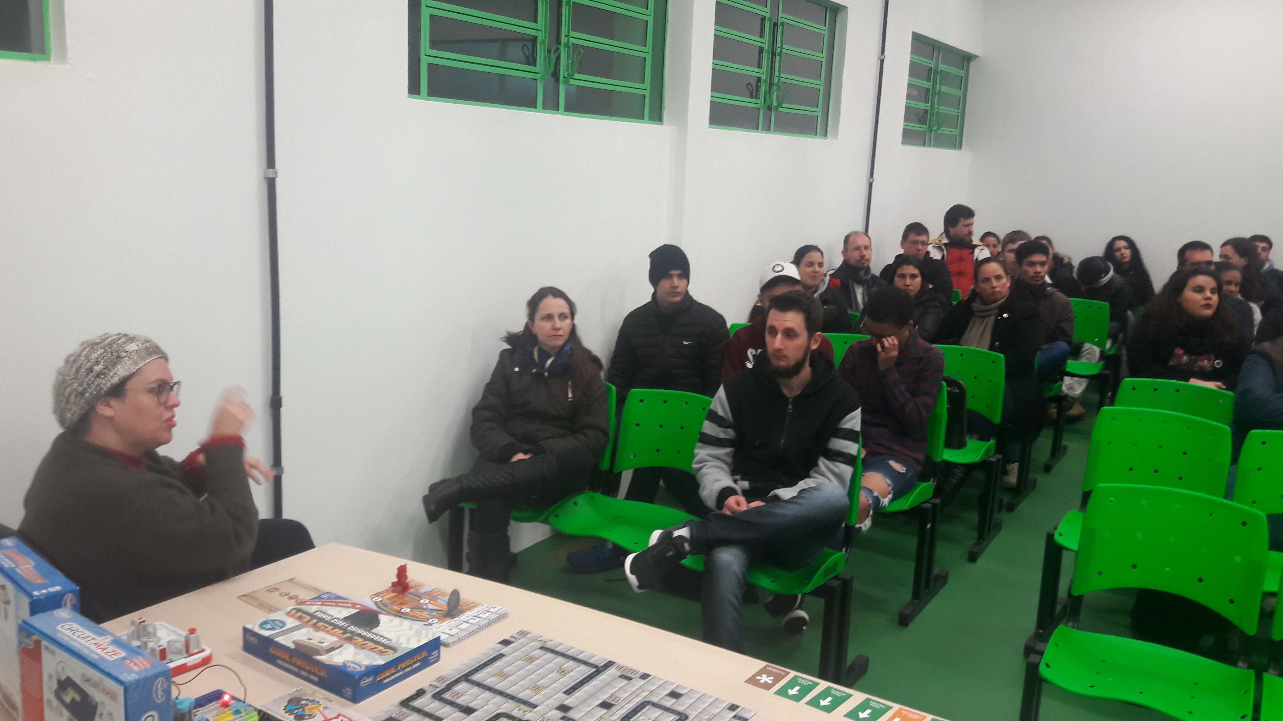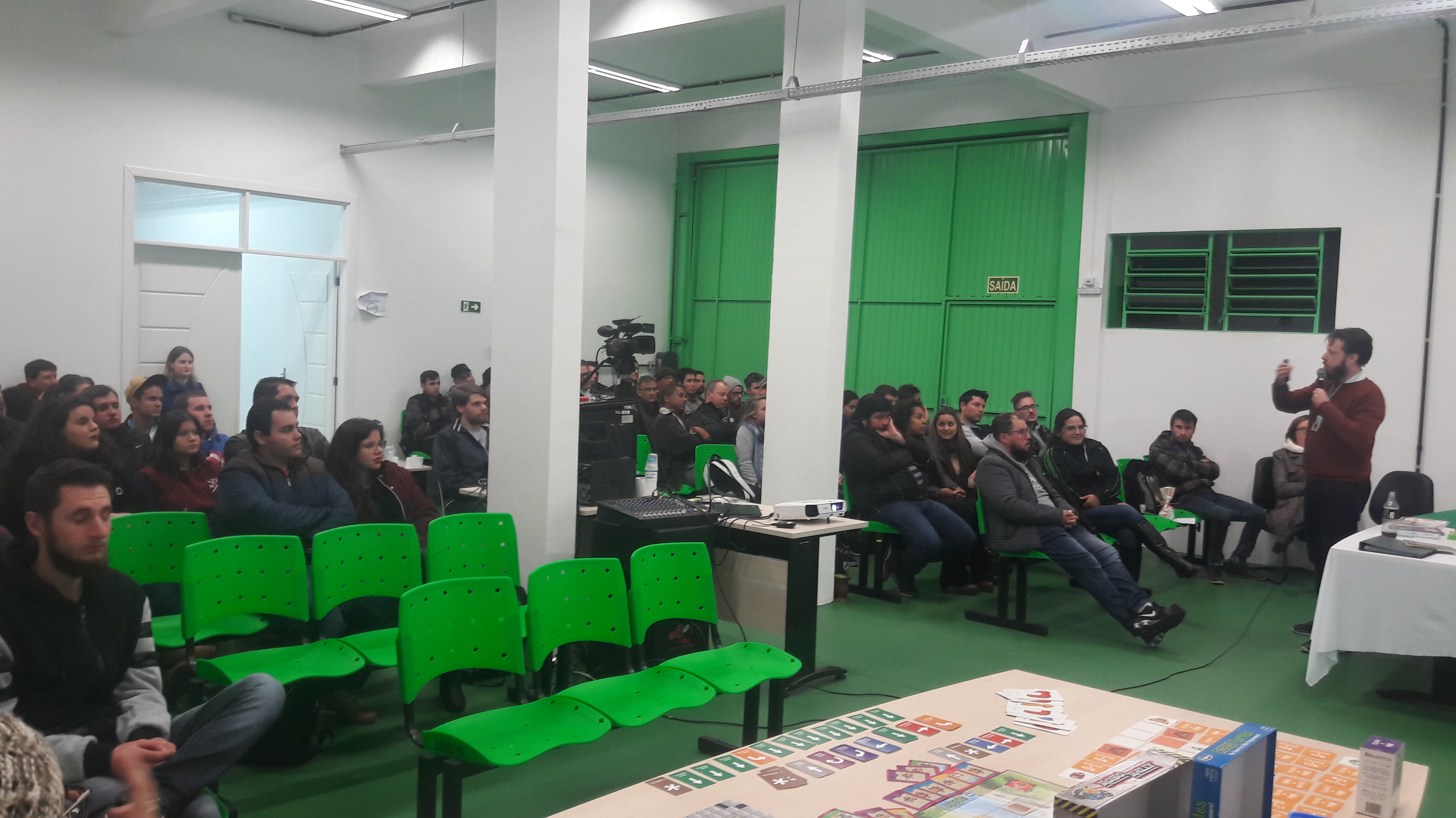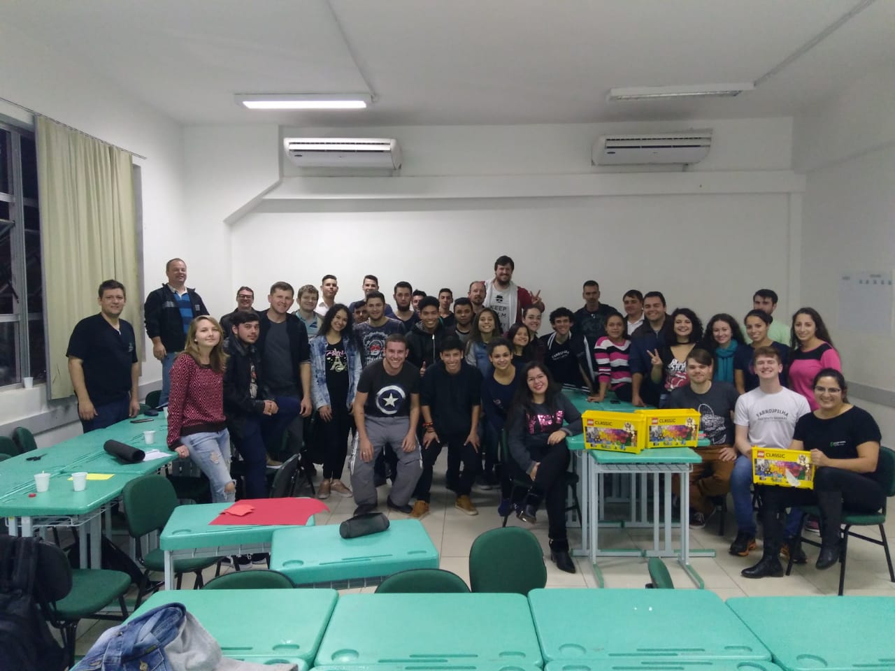 Por fim, na quinta-feira dia 21, os acadêmicos participaram da Oficina de Lego4Scrum: gerenciando equipes e projetos com metodologias ágeis, sob o comando da prof.ª Karlise Soares Nascimento e dos acadêmicos Anderson Daniel Stochero, Samuel Müller Forrati, Lidiane Torres Vieira e Veridiane Torres Vieira. Foi uma noite de atividades totalmente práticas onde, visando trabalhar as Metodologias Ágeis de desenvolvimento de Projeto de Software, como o SCRUM, os oficineiros desafiaram os participantes a projetar e construir uma cidade, com peças de Lego. Durante cada etapa, as equipes tiveram que se organizar de maneira a colaborar entre si para superar as dificuldades e conseguir, ao final, cumprir os prazos e metas estipulados.