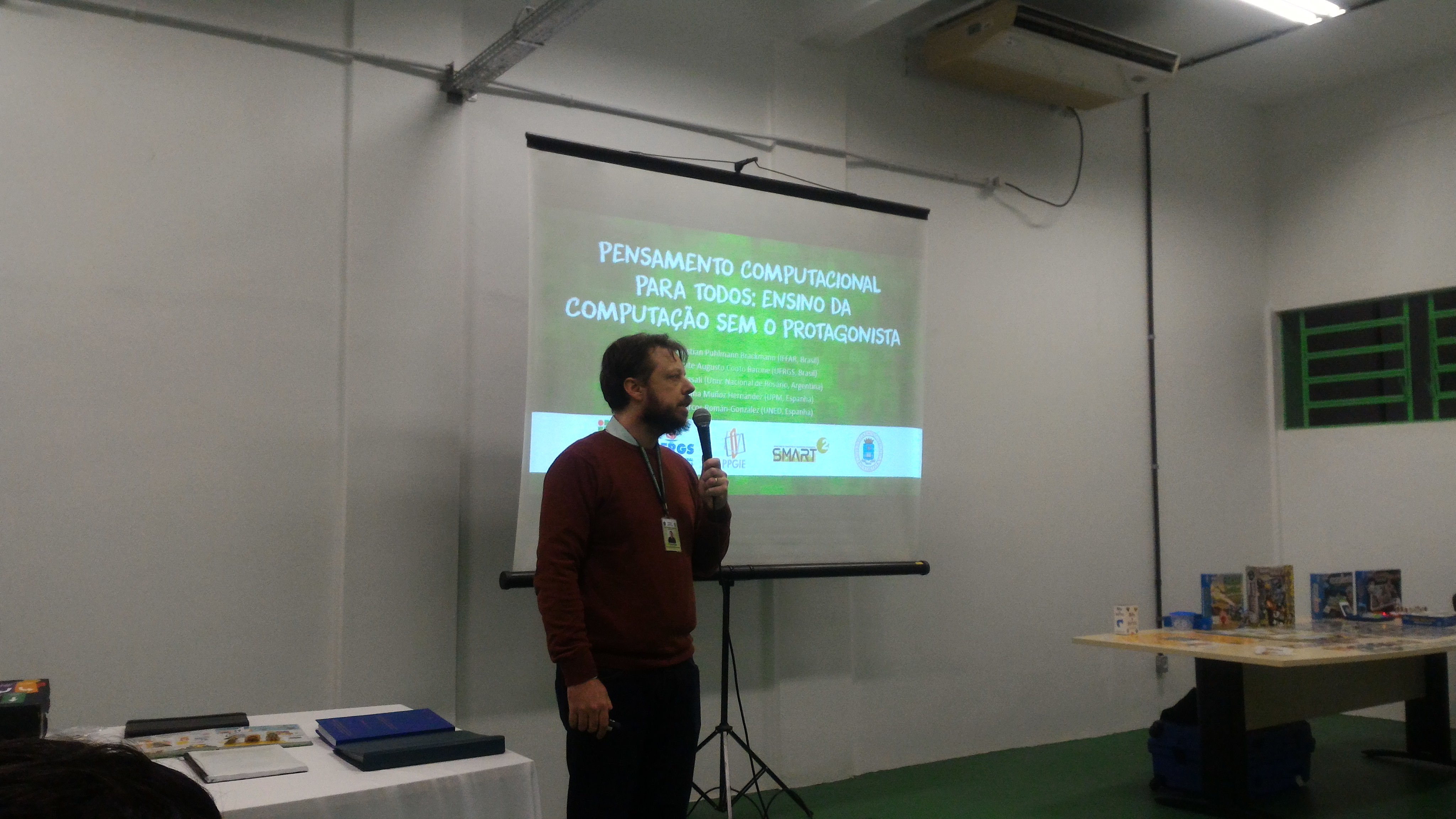 Na primeira noite a programação contou com a palestra do Prof. Dr. Christian Brackmann, sobre o tema "Pensamento Computacional para todos: Ensino da Computação sem o protagonista". Os acadêmicos tiveram a oportunidade de conhecer melhor as diferentes áreas em que a computação está inserida e como ela tem influenciado na evolução das profissões. A importância da inserção da aprendizagem do pensamento computacional desde a educação infantil também foi destaque durante a palestra. Você pode conferir o conteúdo completo no Canal do YouTube do Campus Santo Ângelo (https://youtu.be/nAdvvAtCJYg).
