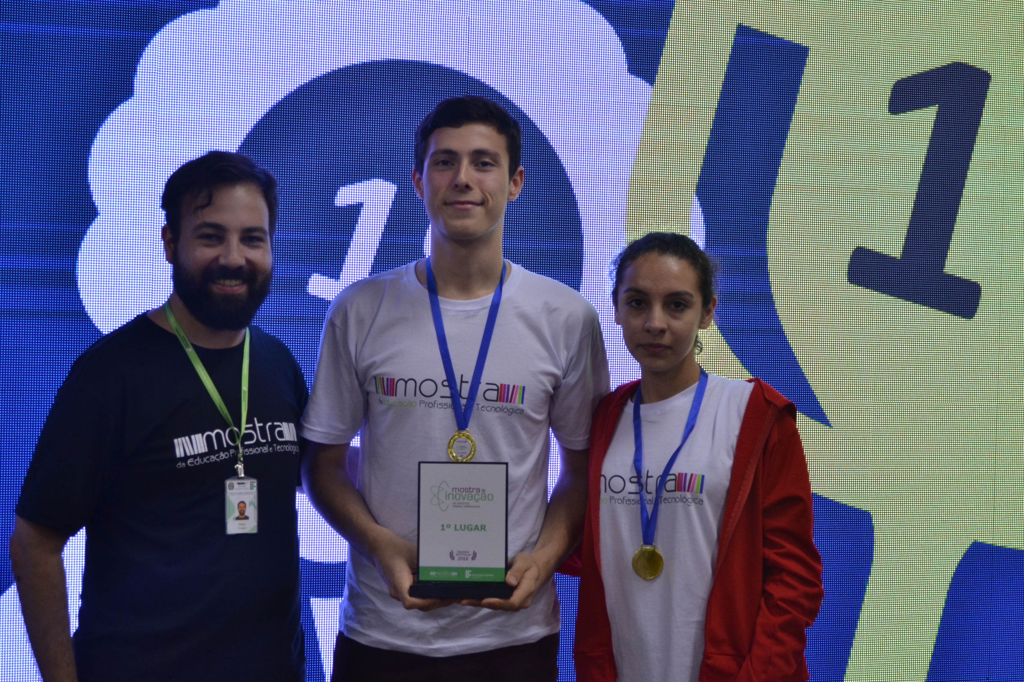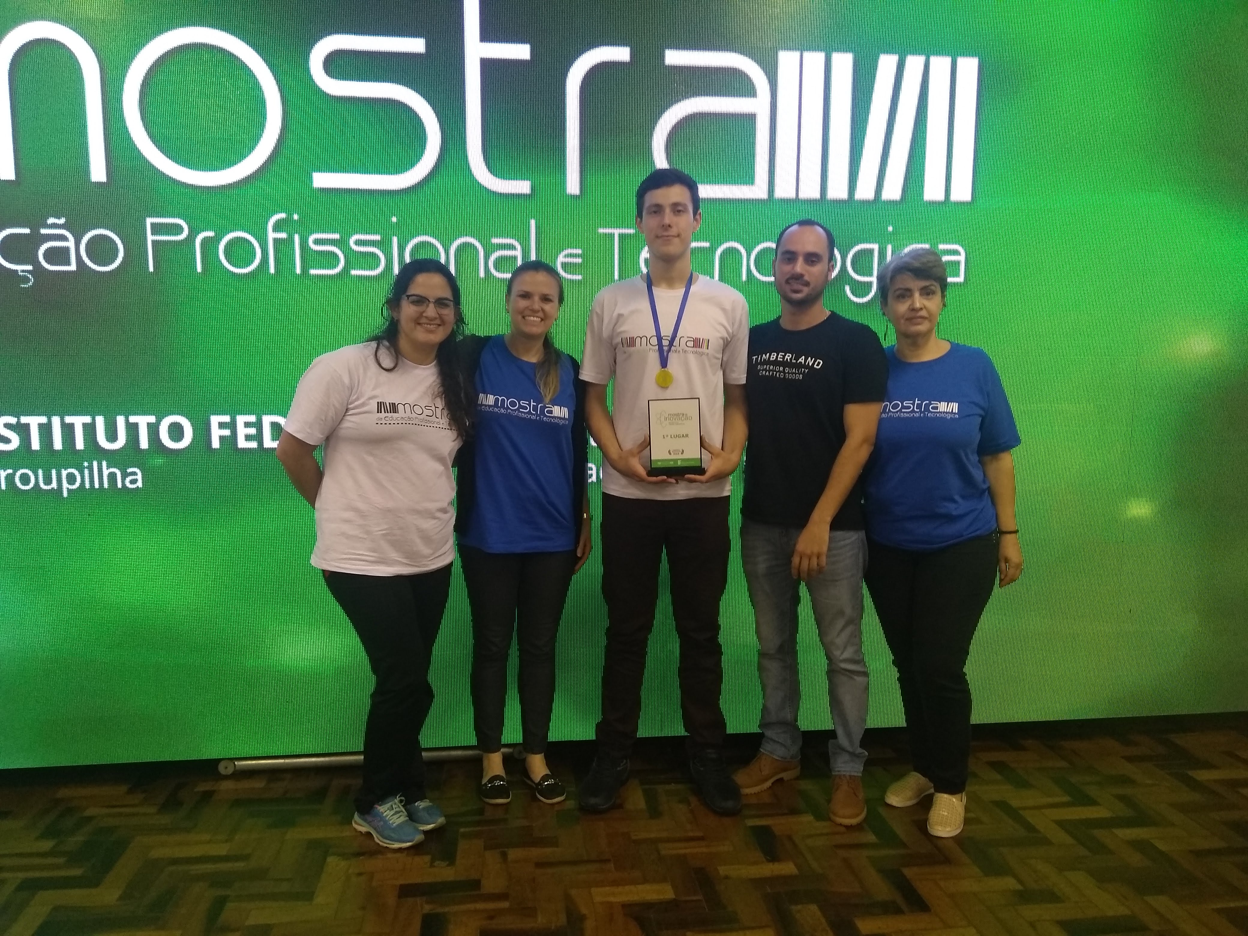 Os alunos Lucas Cargnelutti e Daiane Bermann Corrêa, orientados pelos professores Thaiane Socoloski e Vlads Godói, e colaboração da professora Jéssica Lucion para a gravação dos sons, apresentaram o trabalho intitulado "Protótipo de uma calculadora sonora para usuários com deficiência visual" e receberam o prêmio de 1º lugar na Mostra de Inovação!