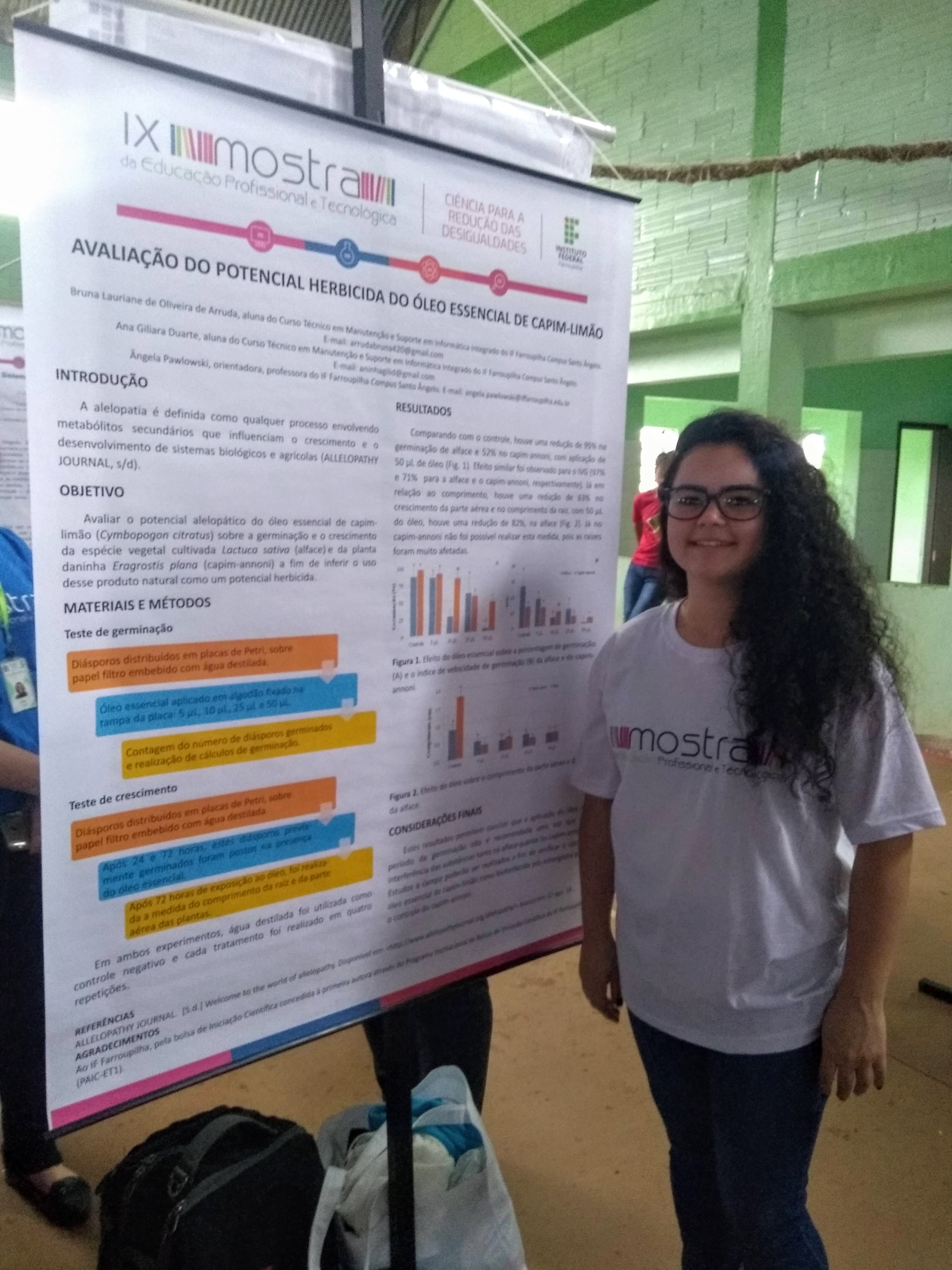 - Avaliação do potencial herbicida do óleo essencial de capim-limão, apresentado pela aluna Bruna de Arruda;