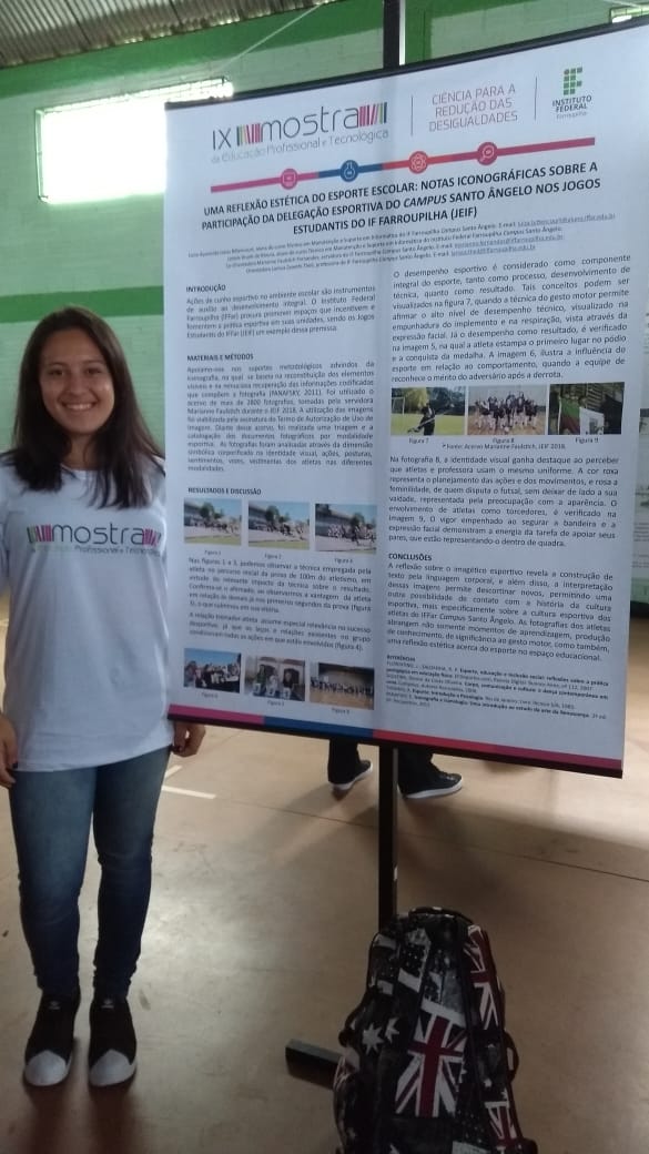 - Uma reflexão estética do esporte escolar: notas iconográficas sobre a participação da delegação esportiva do Campus Santo Ângelo nos Jogos Estudantis do IF Farroupilha (JEIF), apresentado por Luiza Bittencourt;