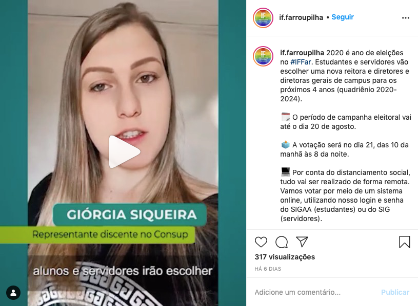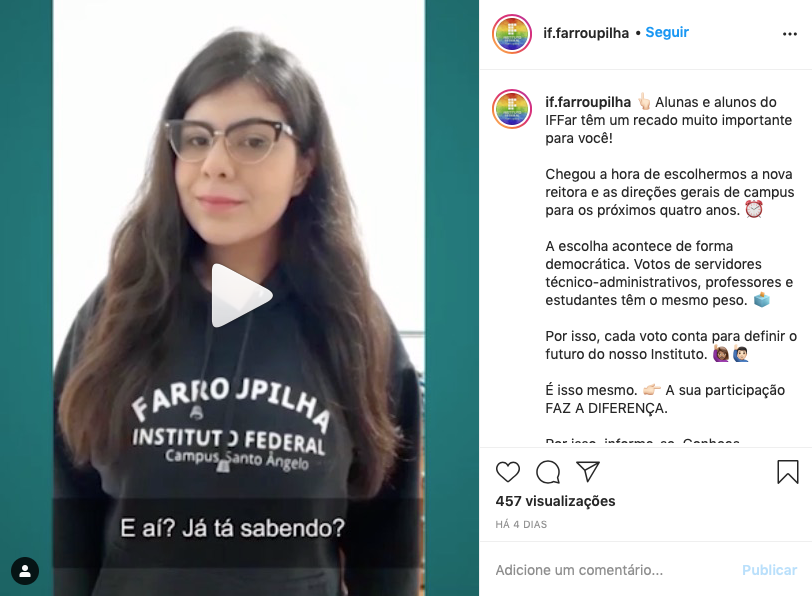 Serão no total quatro vídeos, divulgados até o dia da votação nos perfis oficiais do IFFar no Instagram e no Facebook.