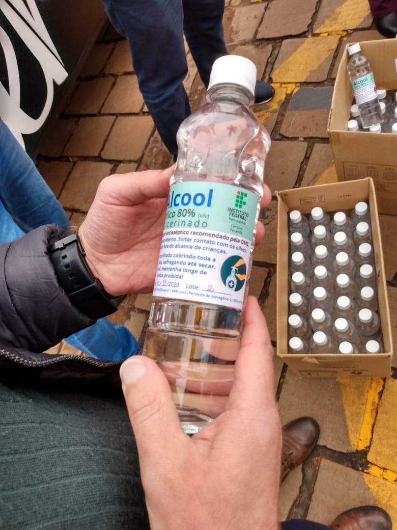 Ao longo dos meses de agosto e setembro de 2020, servidores voluntários do IFFar – Campus Panambi, juntamente com a Bart Bier Cervejaria Artesanal, produziram 2910 unidades de álcool glicerinado 80% para serem doadas a entidades de Panambi e região. A formulação antisséptica é um pouco mais líquida que o álcool gel 70% e é destinada à higienização das mãos.
