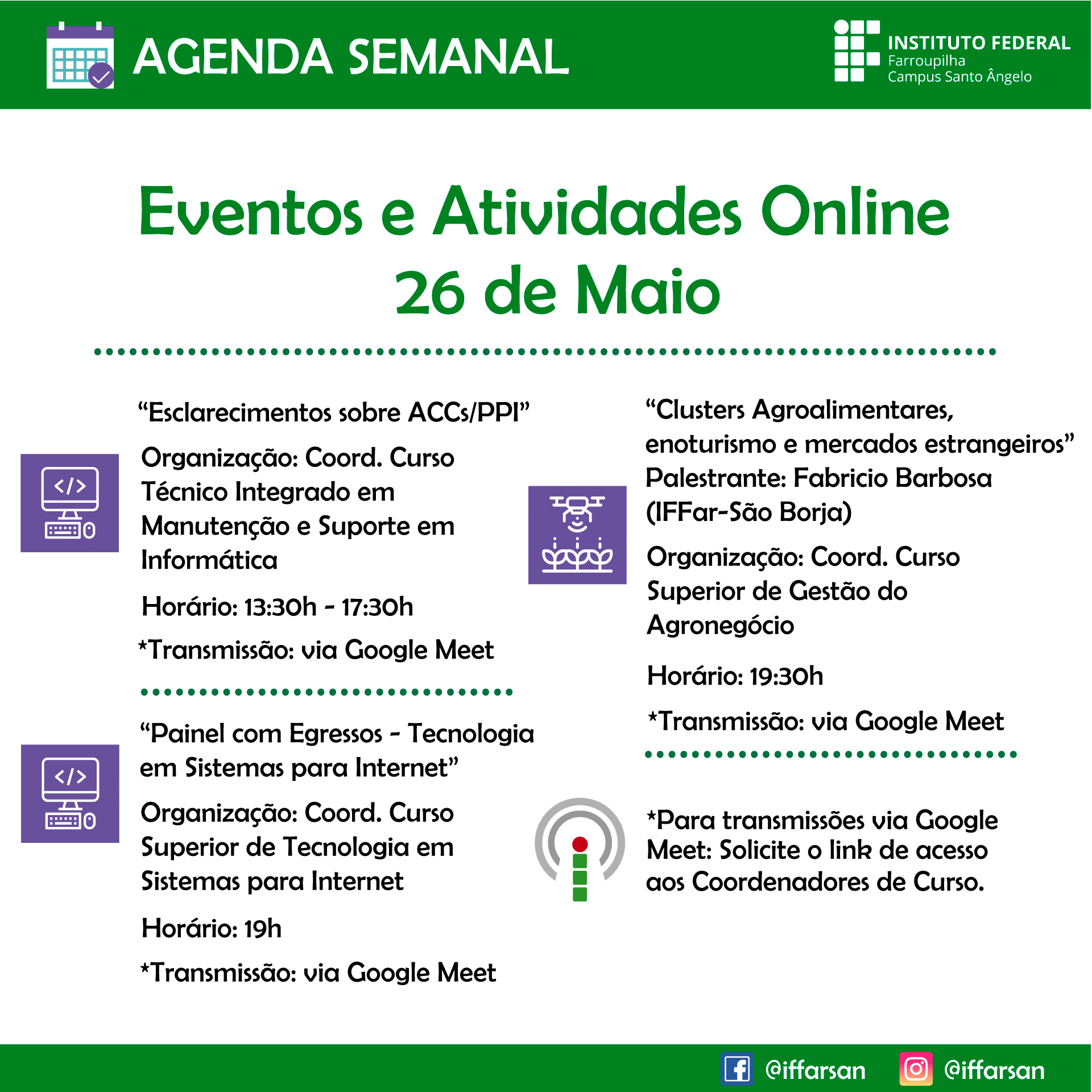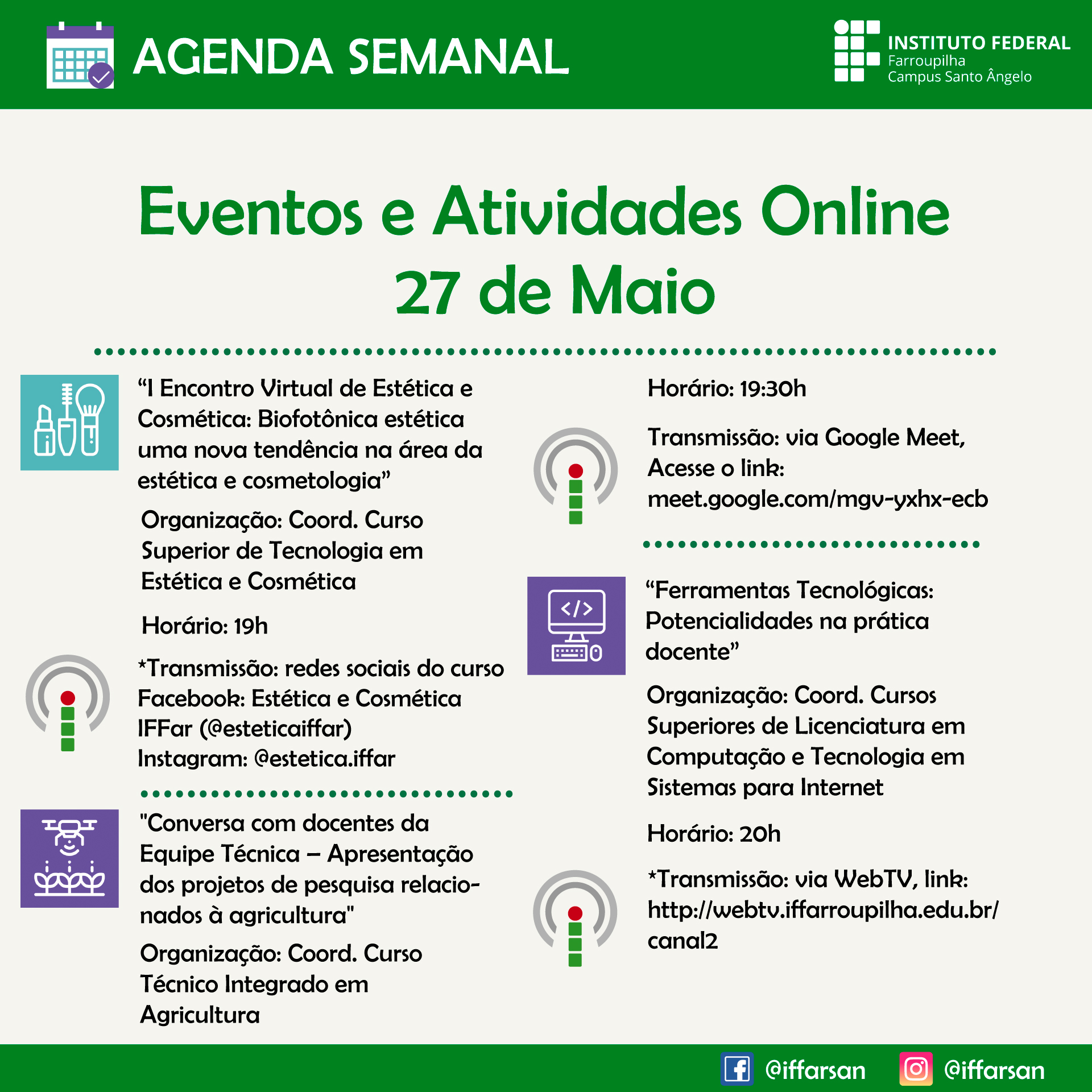 Fique por dentro da programação por meio do nosso site e redes sociais no Facebook e Instagram (@iffarsan).