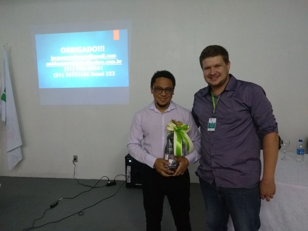A diretora-geral, Renata Rotta, e o professor Rodrigo Magnus Soder, coordenador do Núcleo de Inovação Tecnológica do IFFar – Campus Santa Rosa (NIT), participaram do evento.