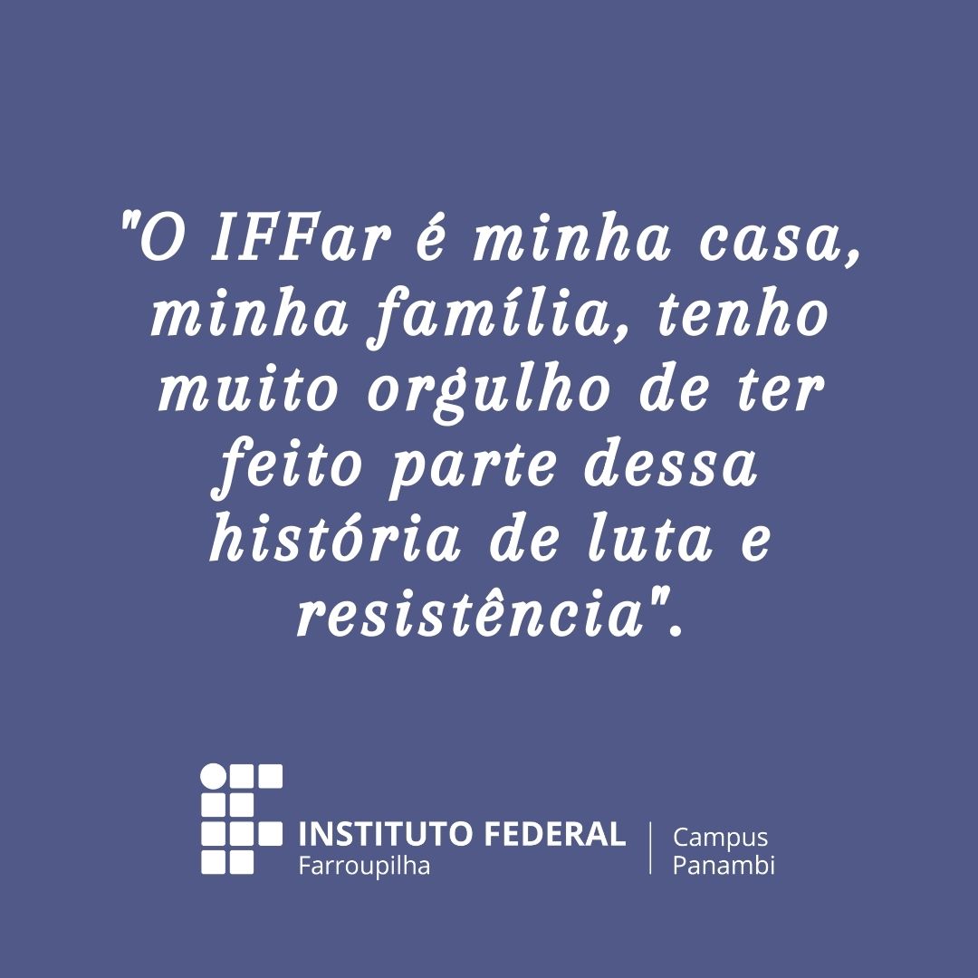 Certamente que sim. A oportunidade de ter educação pública, gratuita e de excelente qualidade tornaram meu processo de especializações, mestrado e doutorado possível. O IFFar é minha casa, minha família, tenho muito orgulho de ter feito parte dessa história de luta e resistência.