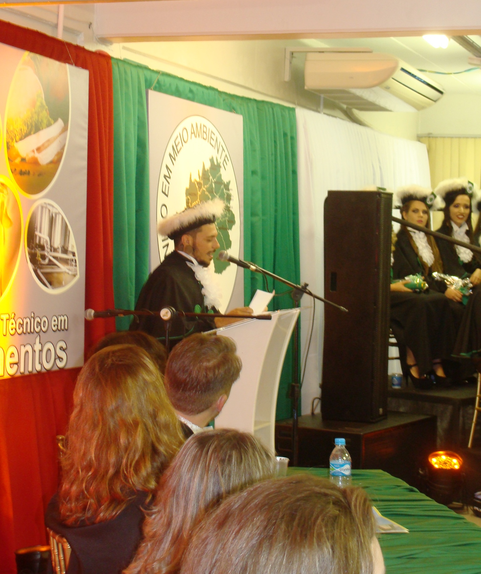 Os formandos do curso Técnico em Alimentos escolheram como patrono o professor Lauri Mayer e como paraninfa a professora Adriana Hansel Michelotti. Já os alunos do curso Técnico em Meio Ambiente homenagearam a professora Luciane Carvalho Oleques como patronesse e, como paraninfo, o coordenador do curso, professor Rodrigo Santolin.