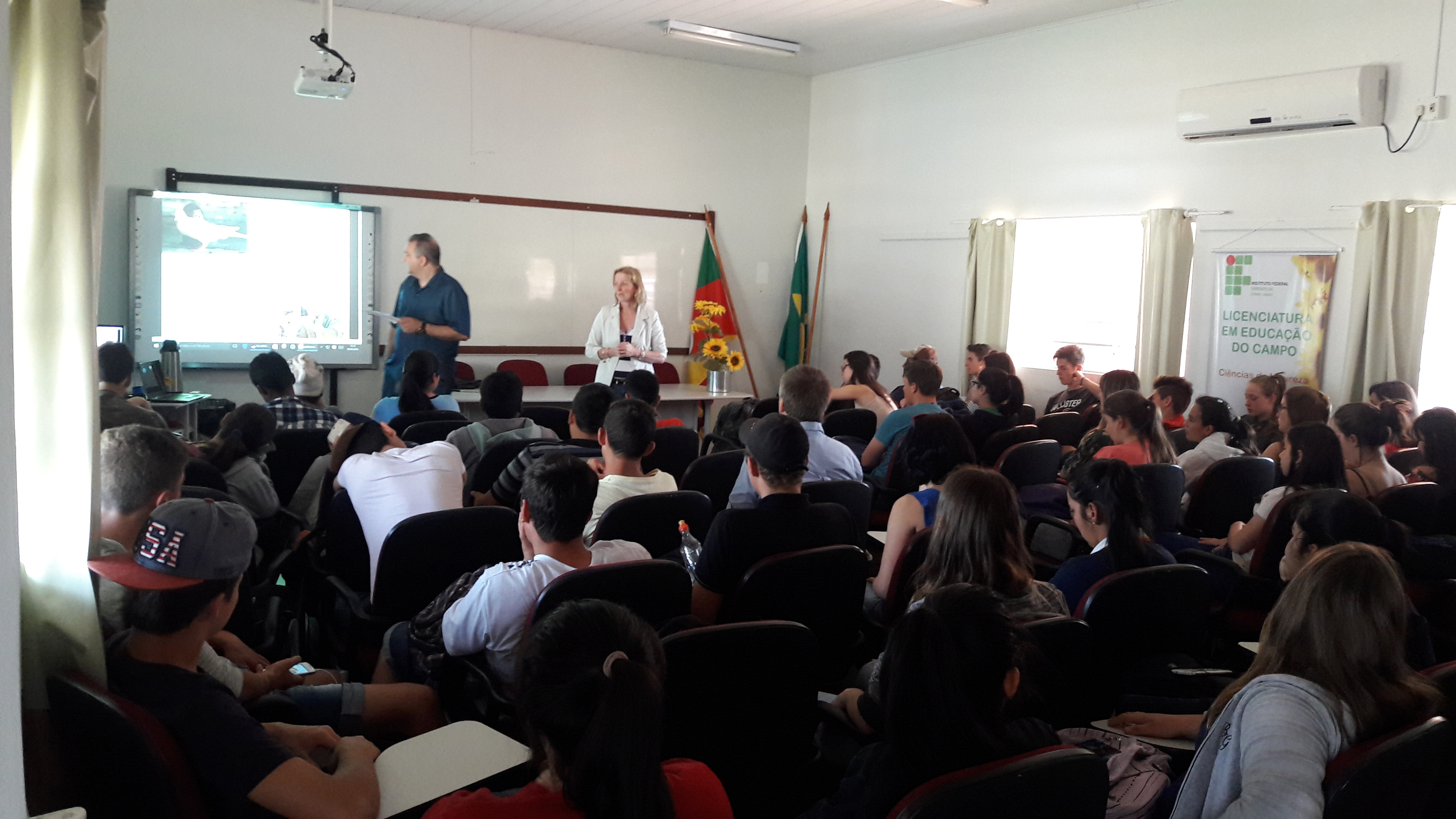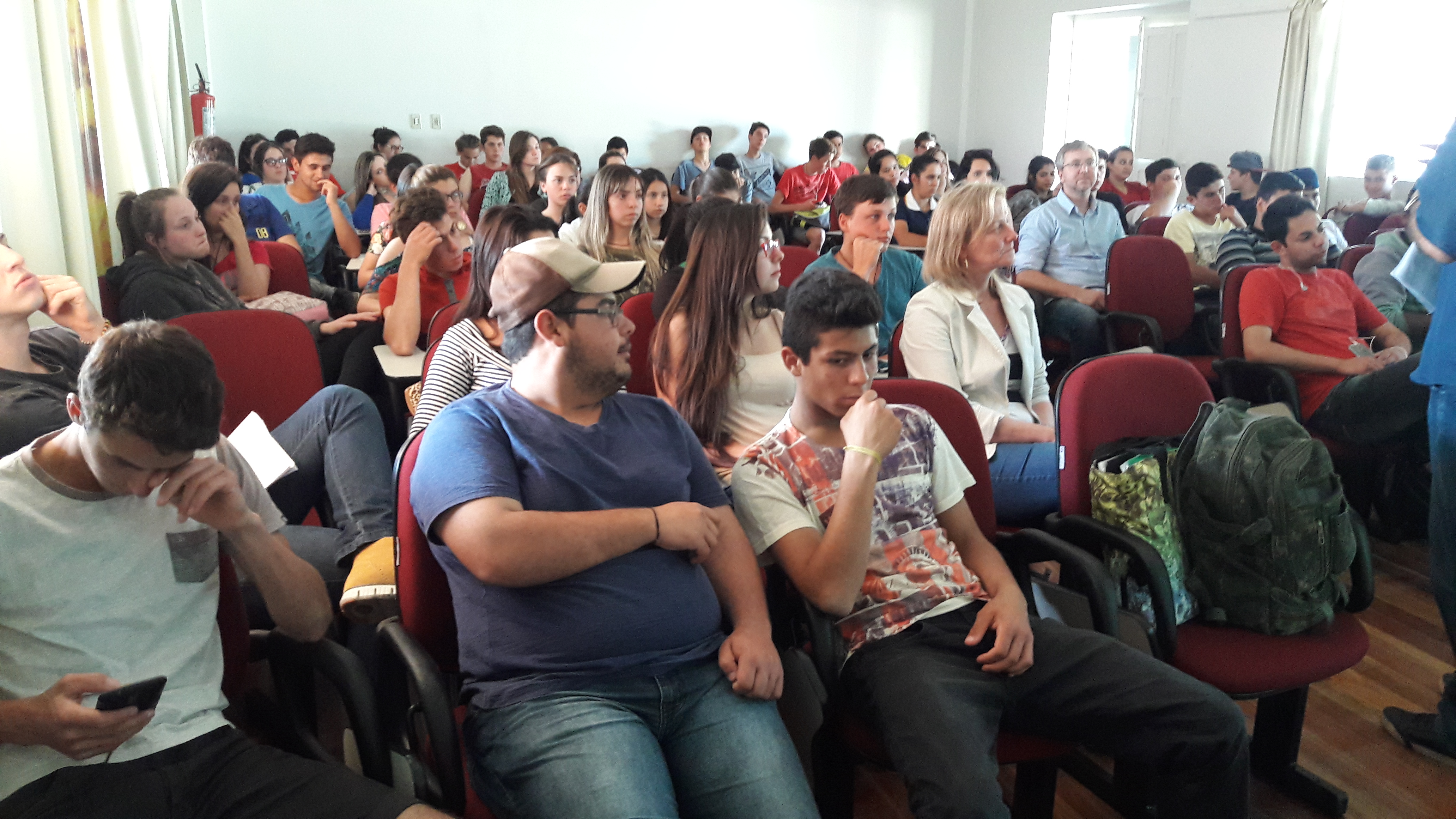 Vinícius relatou para os alunos presentes a importância das incubadoras tecnológicas e citou que hoje “como aluno graduando de engenharia elétrica, lembra dos professores do IFFar o incentivando a estudar, e a importância de buscar novos conhecimentos. Ele vindo da cidade de Nova Esperança não imaginava que pudesse ir tão distante”.